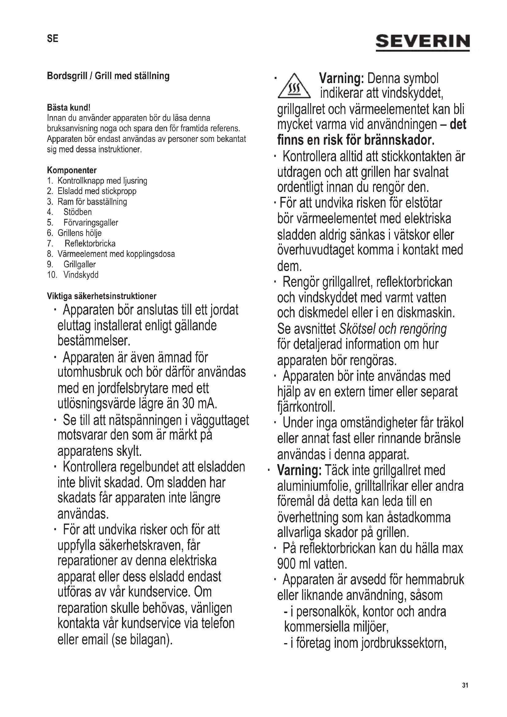 PG 8109 - Grill SEVERIN - Gratis bruksanvisning och manual