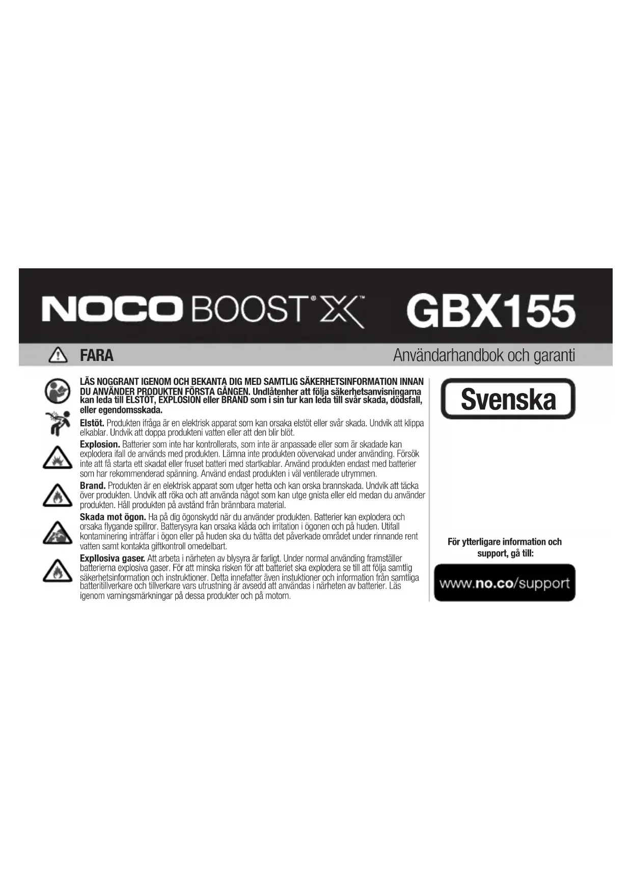 BRUKSANVISNING Boost X GBX155 NOCO