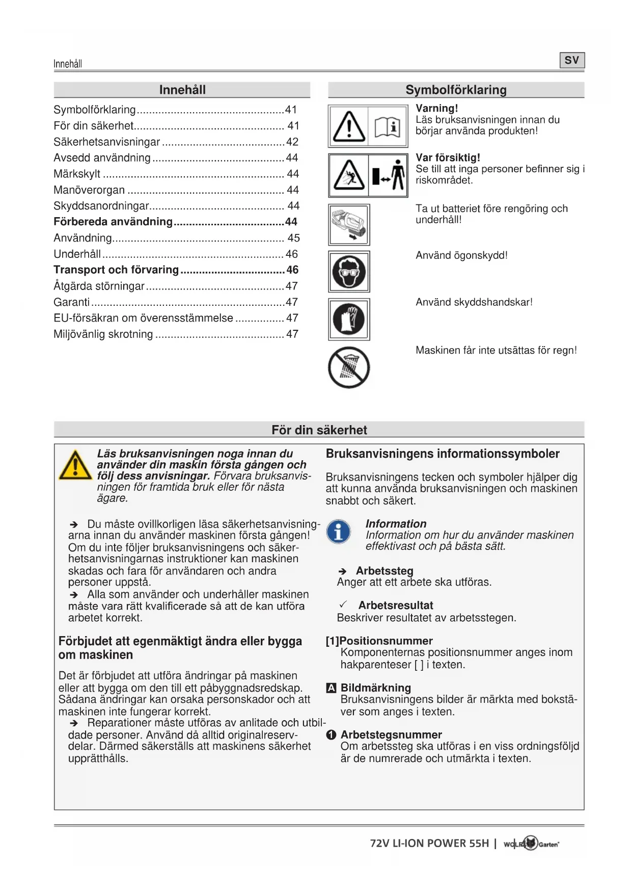 BRUKSANVISNING 72V LiIon Battery Power 55H Wolf Garten
