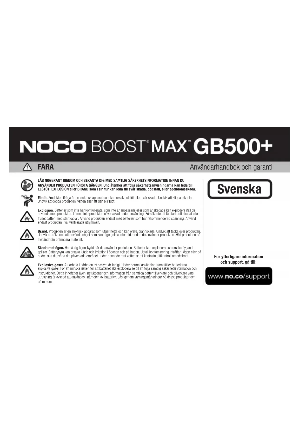 BRUKSANVISNING Genius Boost Max GB500 NOCO