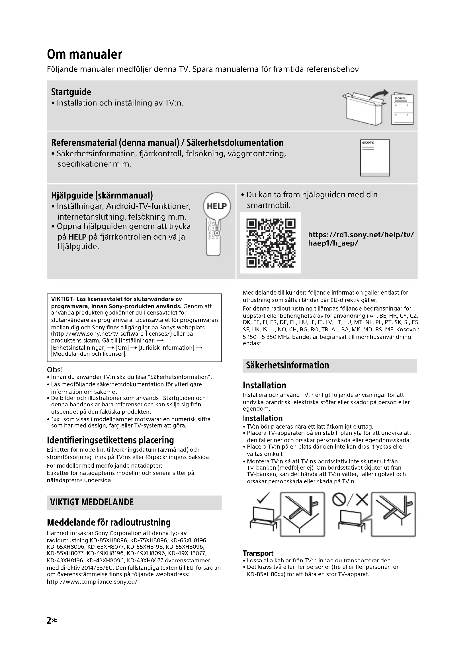Ladda ner instruktionerna för din TV i PDF-format gratis! Hitta din manual KD65XH8096BAEP - SONY och ta tillbaka ditt elektroniska enhet i hand. På denna sida publiceras alla dokument som behövs för att använda din enhet. KD65XH8096BAEP av märket SONY.