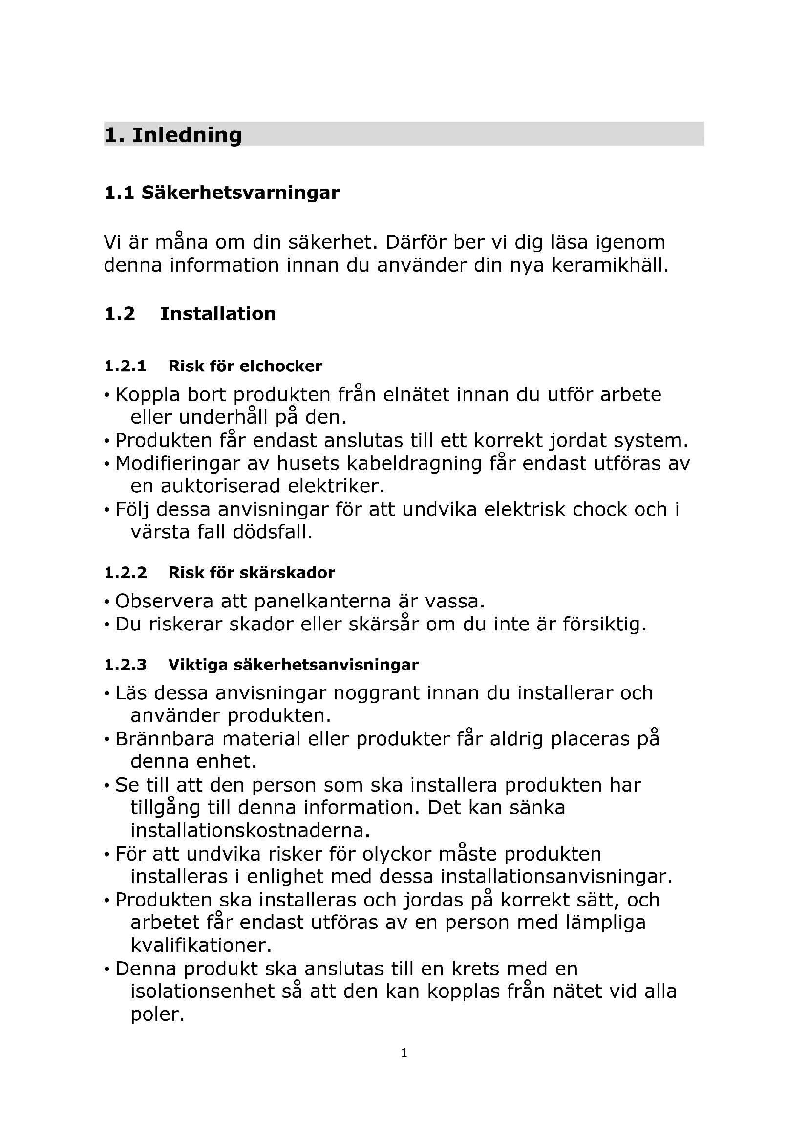 Vi är måna om din säkerhet. Därför ber vi dig läsa igenom denna information innan du använder din nya keramikhäll.