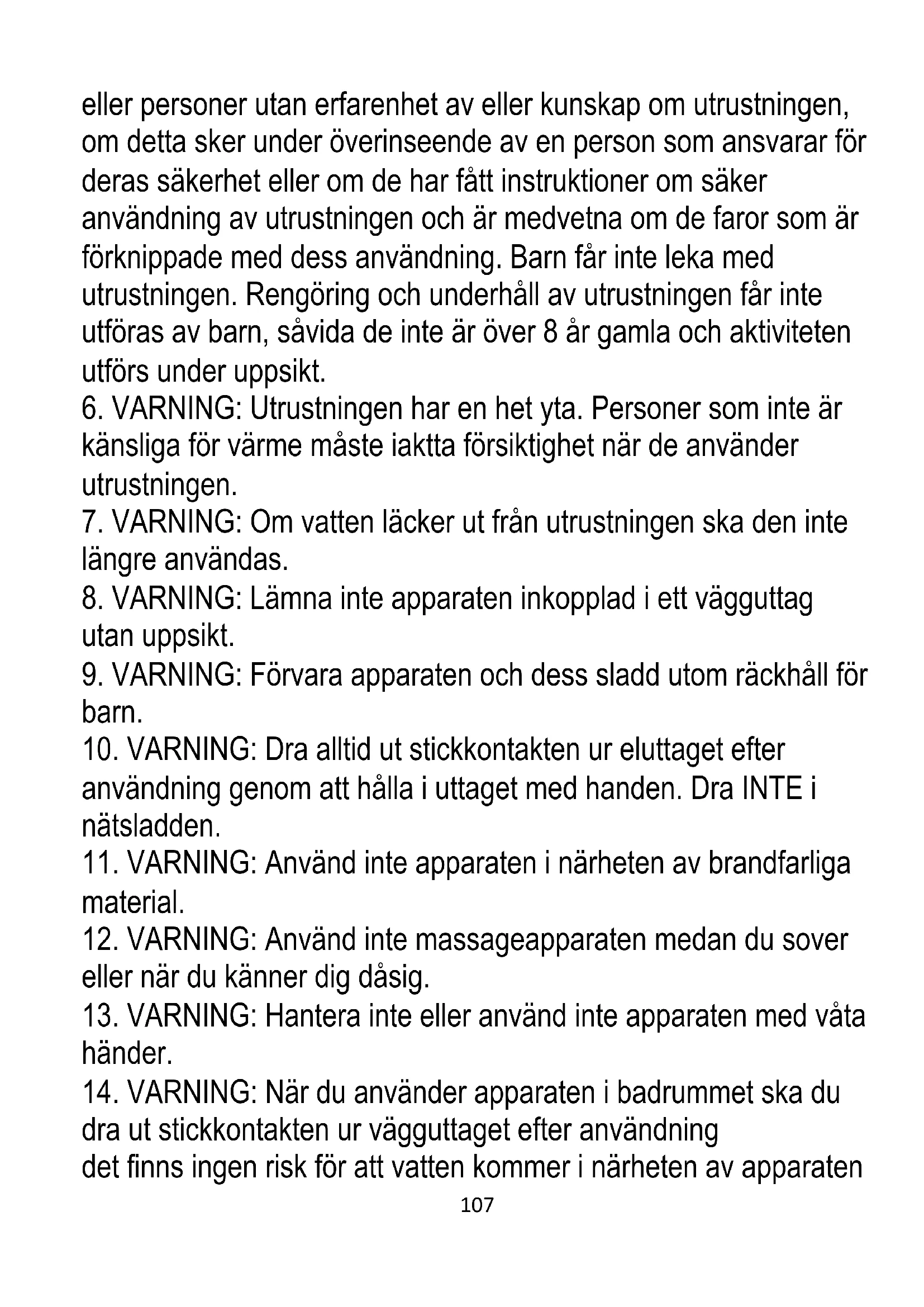 12. VARNING: Använd inte massageapparaten medan du sover