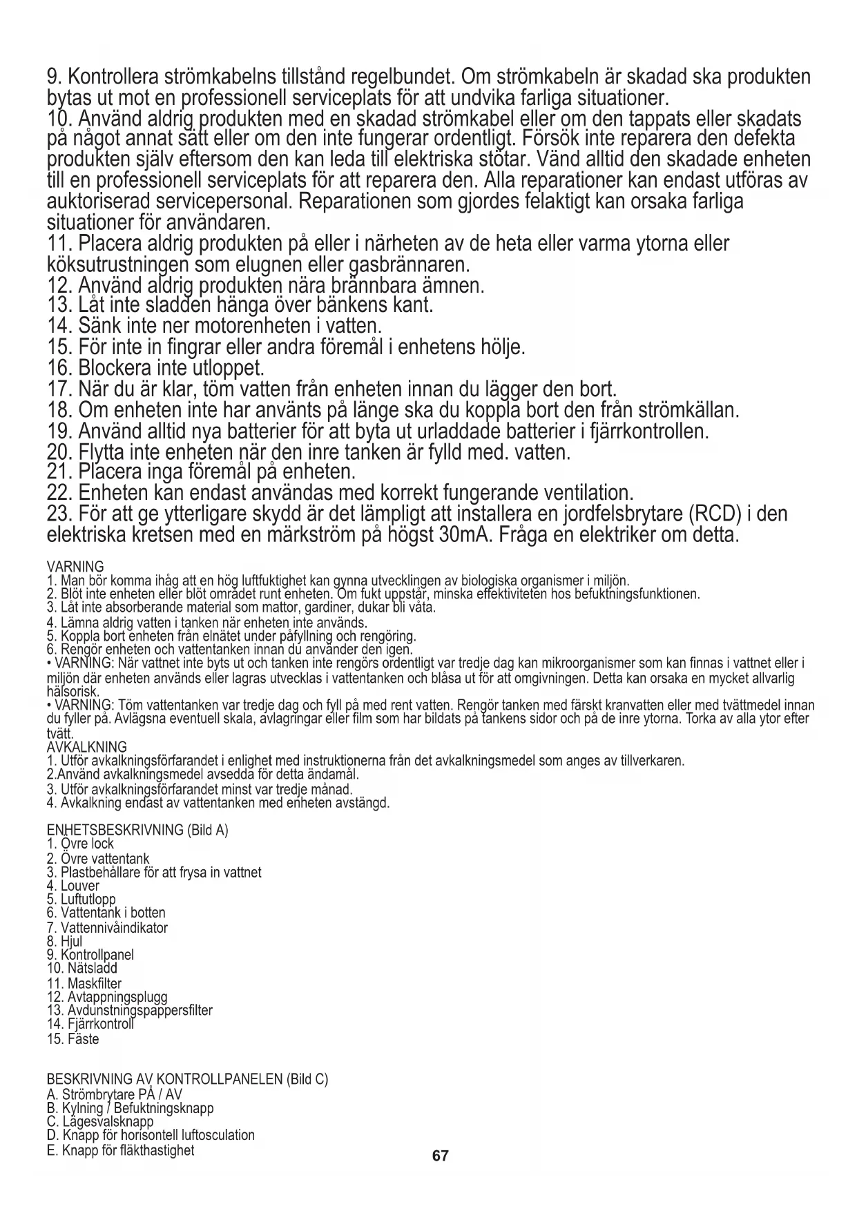 22. Enheten kan endast användas med korrekt fungerande ventilation.