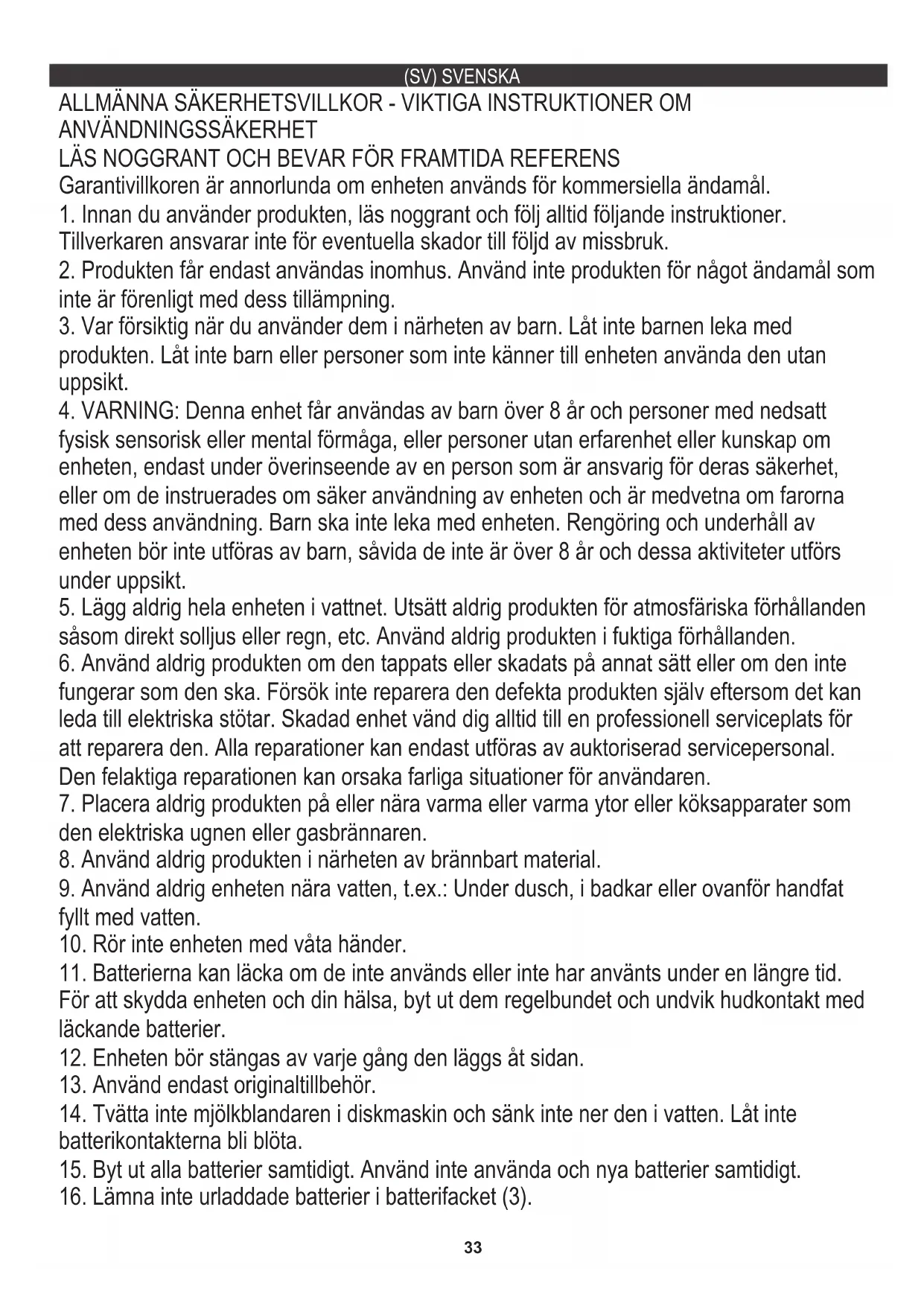 4. VARNING: Denna enhet får användas av barn över 8 år och personer med nedsatt