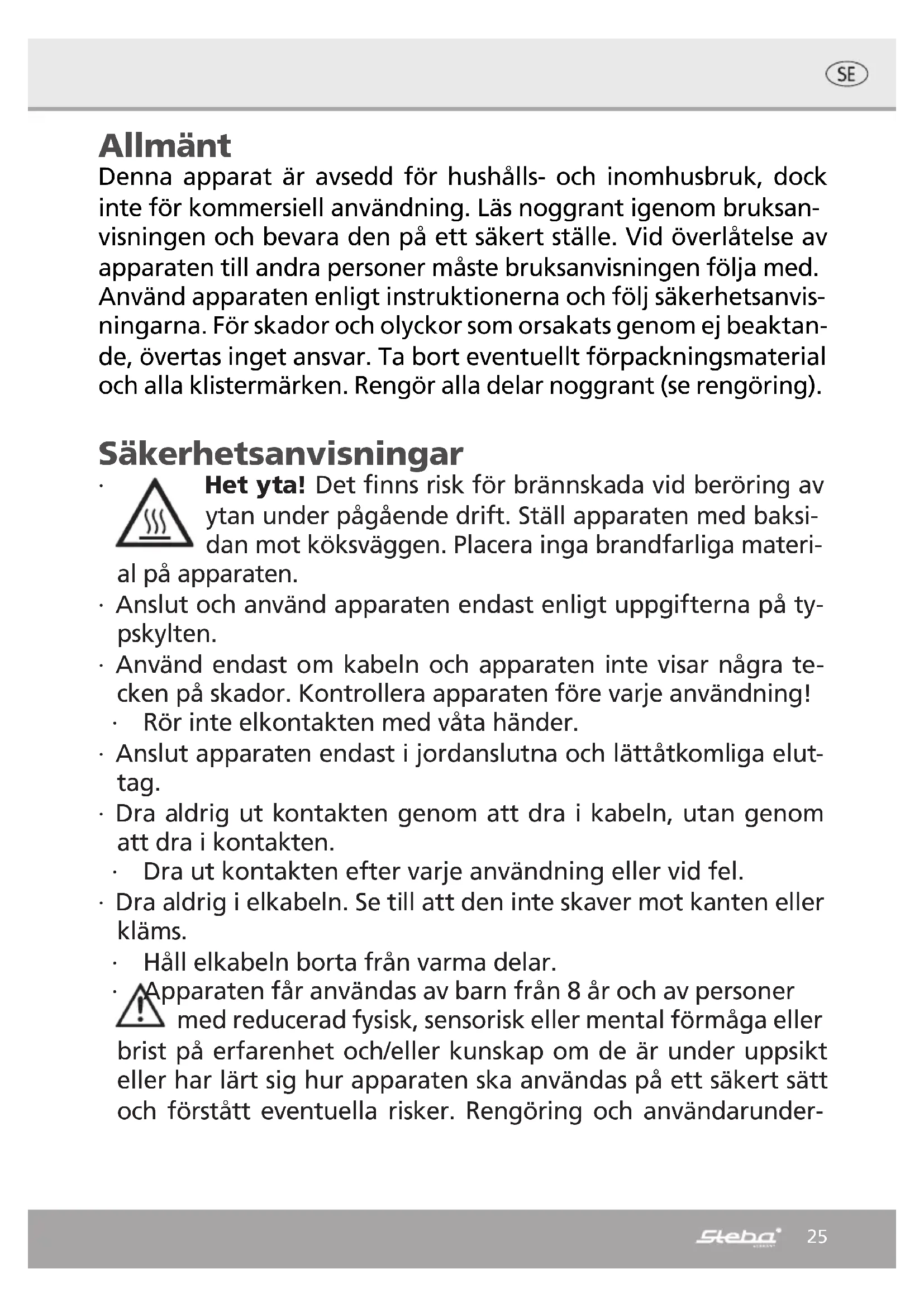 WP 120 - Värmeplatta STEBA - Gratis bruksanvisning och manual