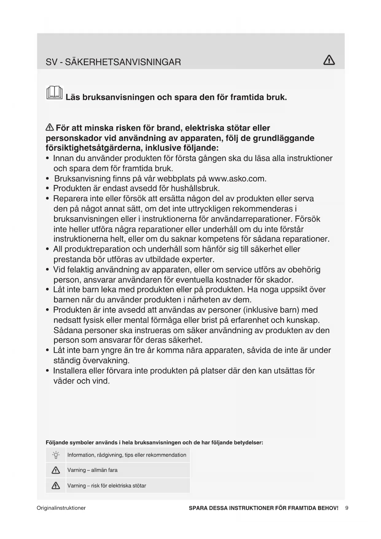 - Bruksanvisning fi nns på vår webbplats på www.asko.com.