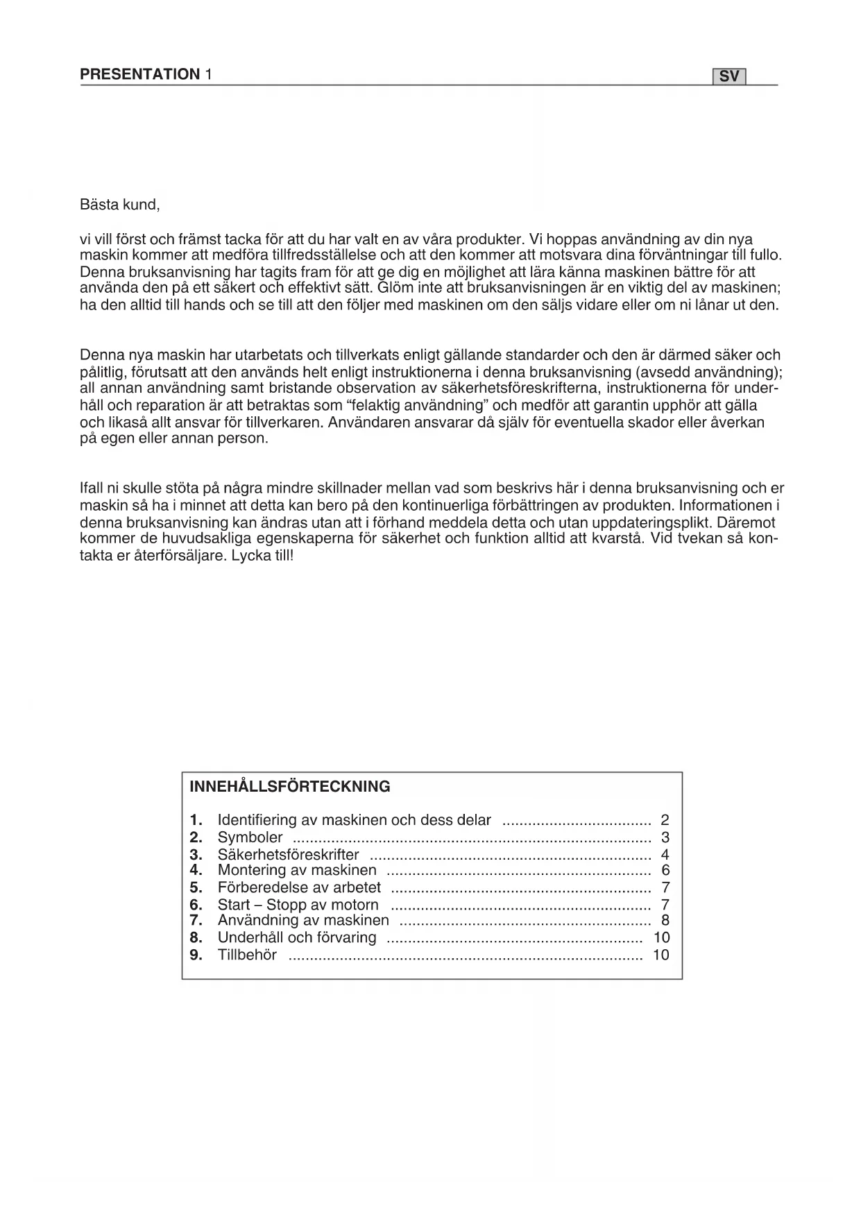 SVENSKA - Översättning av bruksanvisning i original ....................................