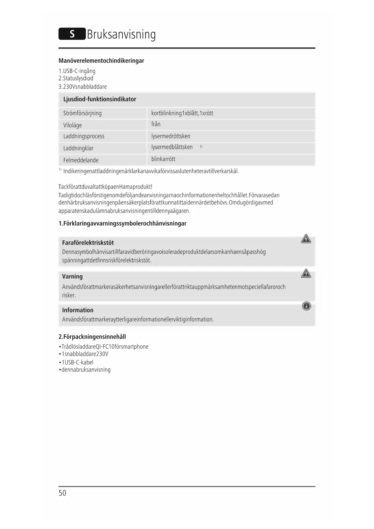 Indikeringen att laddningen är klar kan avvika för vissa slutenheter av tillverkarskäl. Tack för att du valt att köpa en Hamaprodukt! Ta dig tid och läs först igenom de följande anvisningarna och informationen helt och hållet. Förvara sedan den här bruksanvisningen på en säker plats för att kunna titta i den när det behövs. Om du gör dig av med apparaten ska du lämna bruksanvisningen till den nya ägaren.