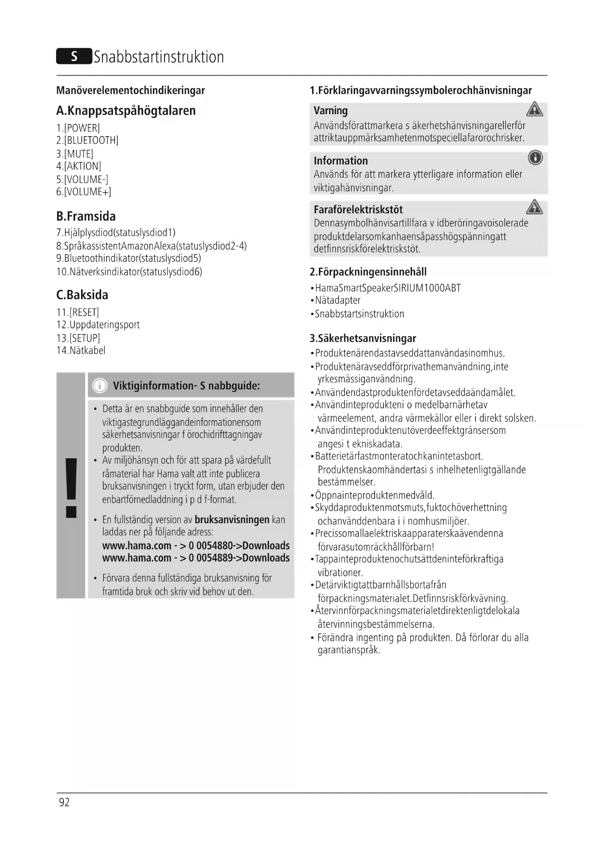 - En fullständig version av bruksanvisningen kan laddas nerpåföljande adress: www.hama.com->00054880 -> Downloads www.hama.com->00054889 -> Downloads
