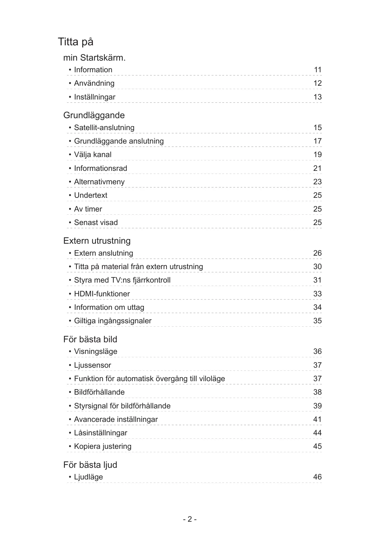 För bästa bild • Visningsläge36 • Ljussensor37 • Funktion för automatisk övergång till viloläge