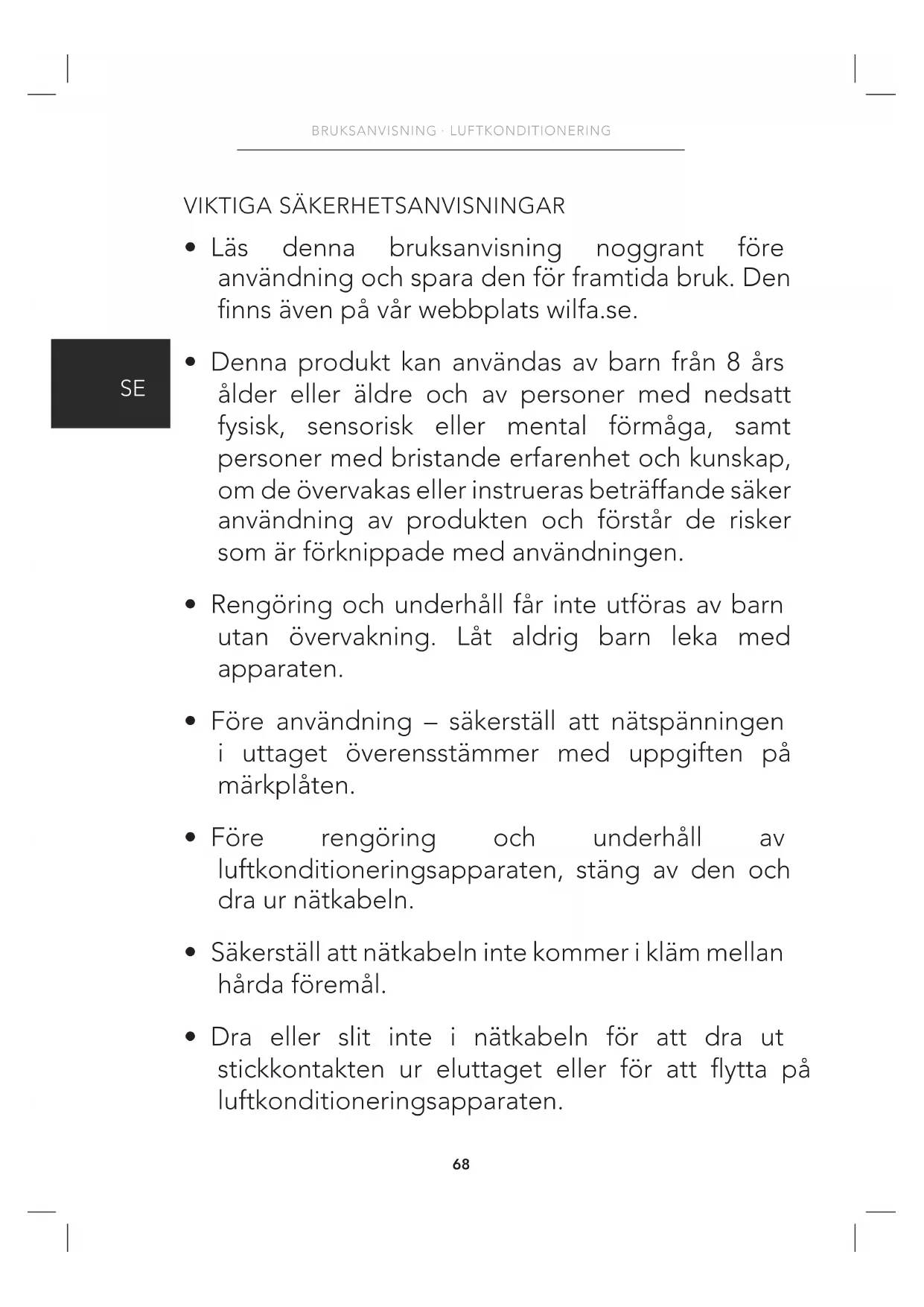- Läs denna bruksanvisning noggrant före användning och spara den för framtida bruk. Den nns även på vår webbplats wilfa.se.