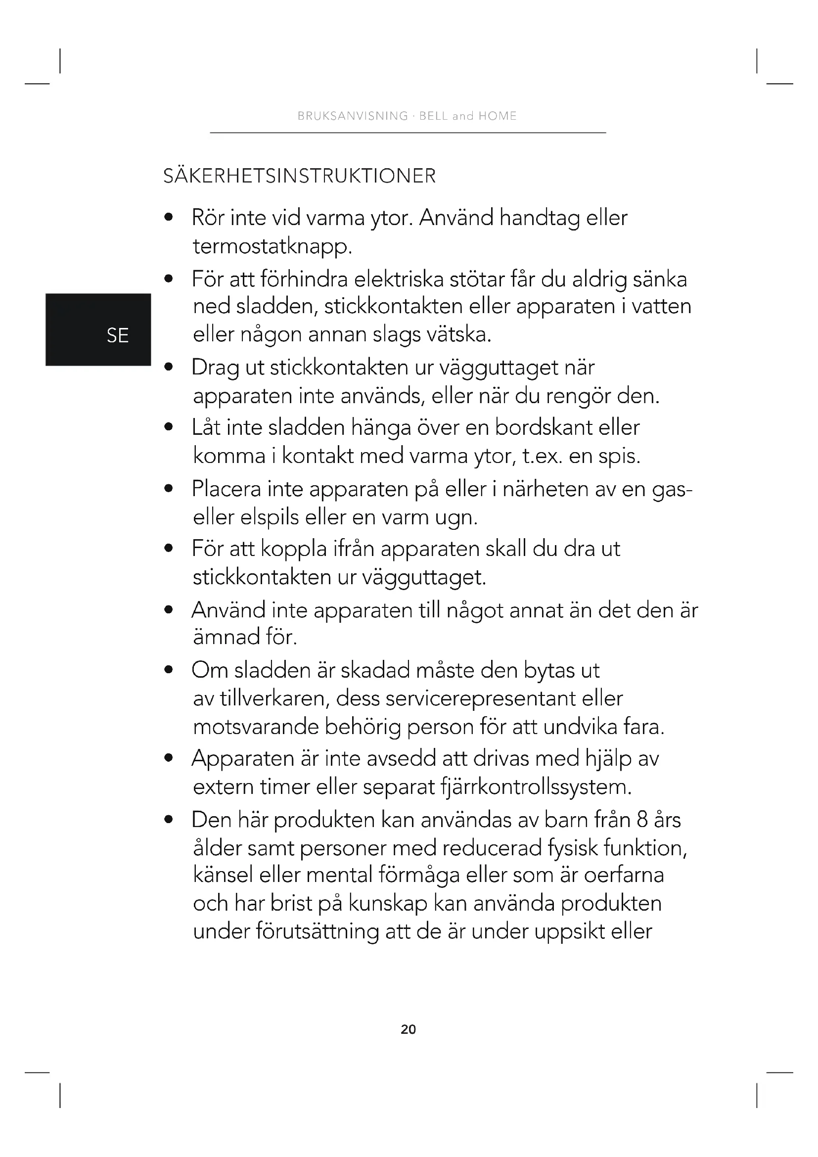 - Den här produkten kan användas av barn från 8 års ålder samt personer med reducerad fysisk funktion, känsel eller mental förmåga eller som är oerfarna och har brist på kunskap kan använda produkten under förutsättning att de är under uppsikt eller21