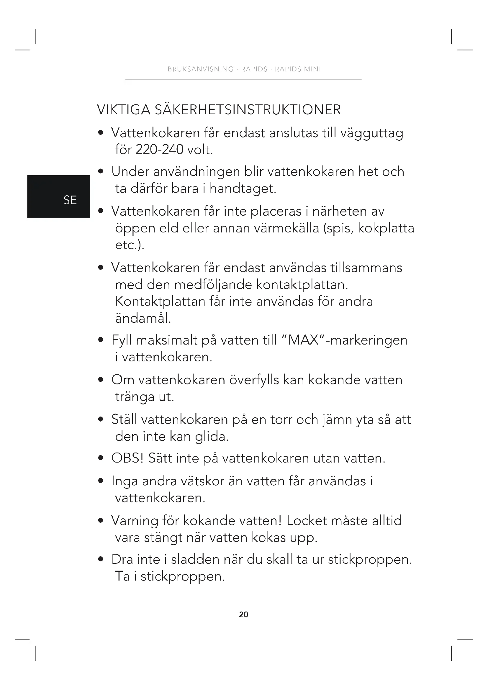 - Dra inte i sladden när du skall ta ur stickproppen. Ta i stickproppen.21