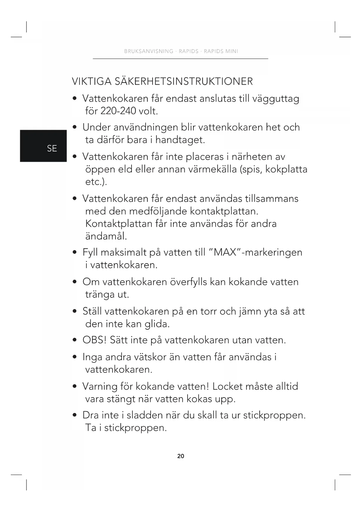 - Om vattenkokaren används till annat ändamål än avsett, eller behandlas fel, har användaren själv ansvaret för ev. skador.