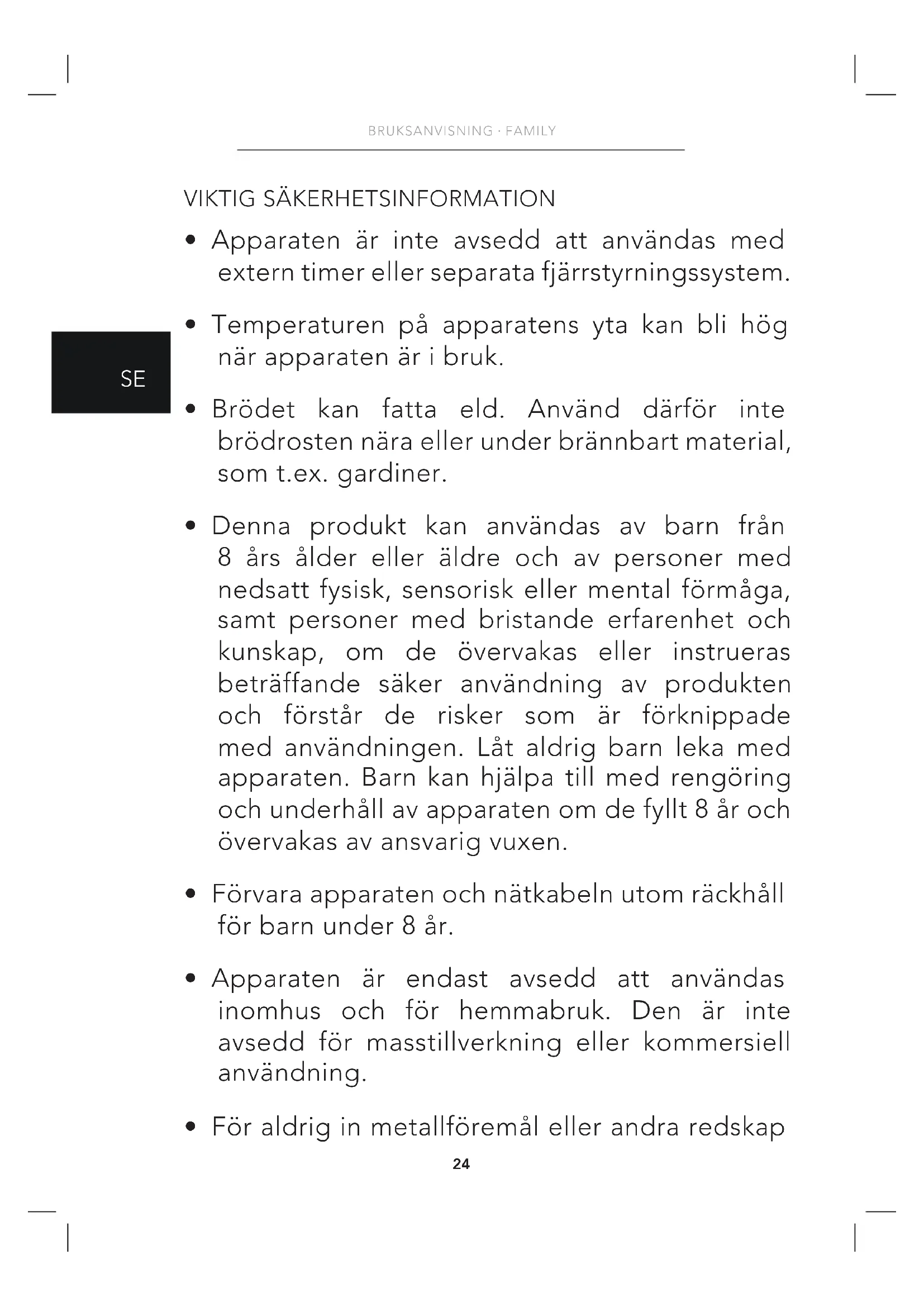 - Lämna aldrig brödrosten utan uppsikt när den är igång.