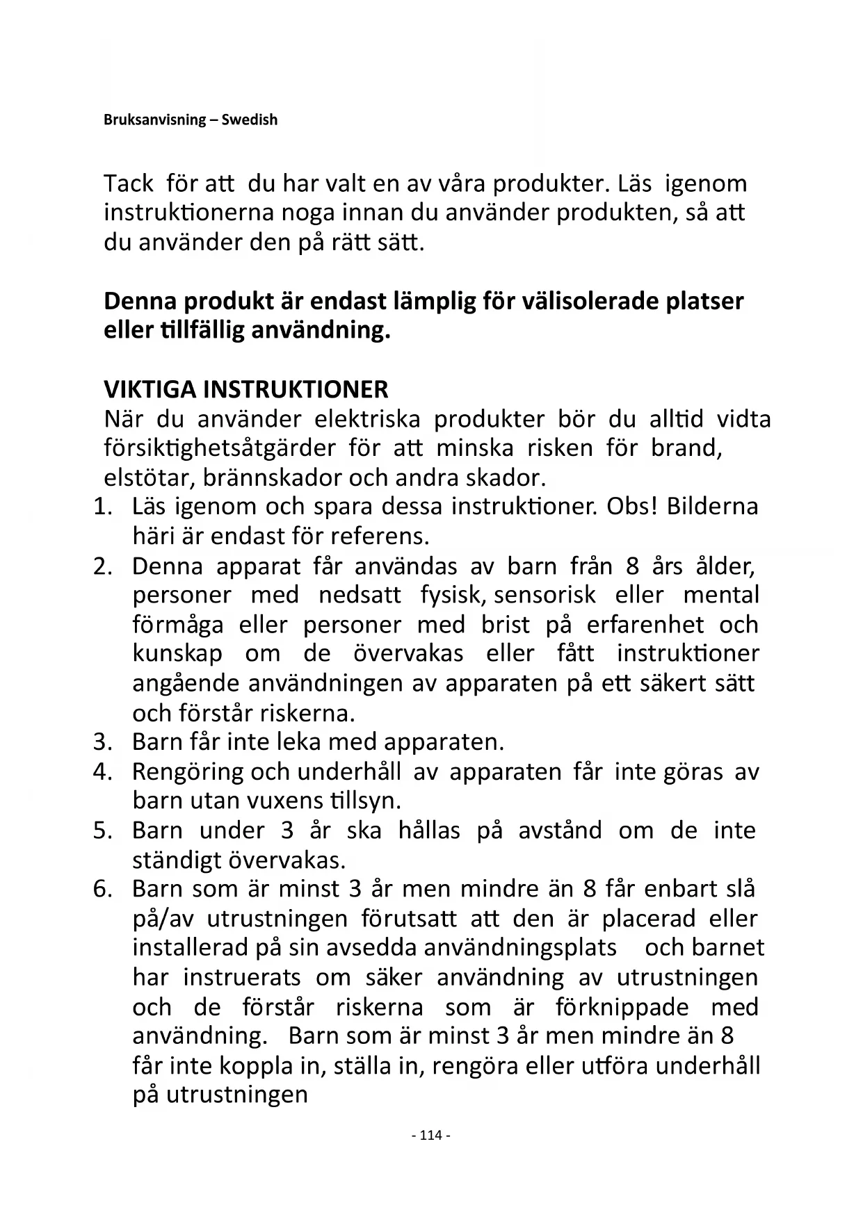 22. Använd produkten endast inomhus.- 116 -