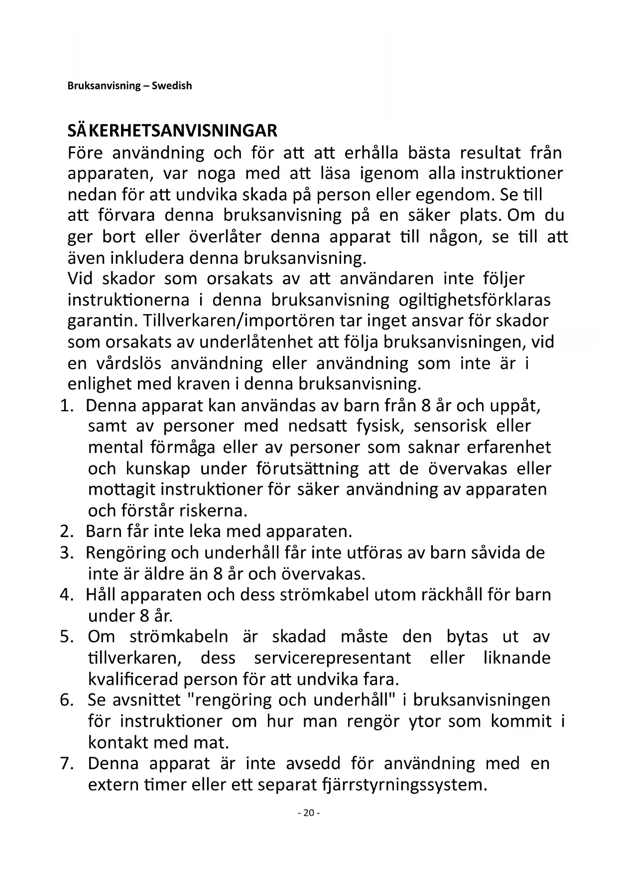1. Denna apparat kan användas av barn från 8 år och uppåt,