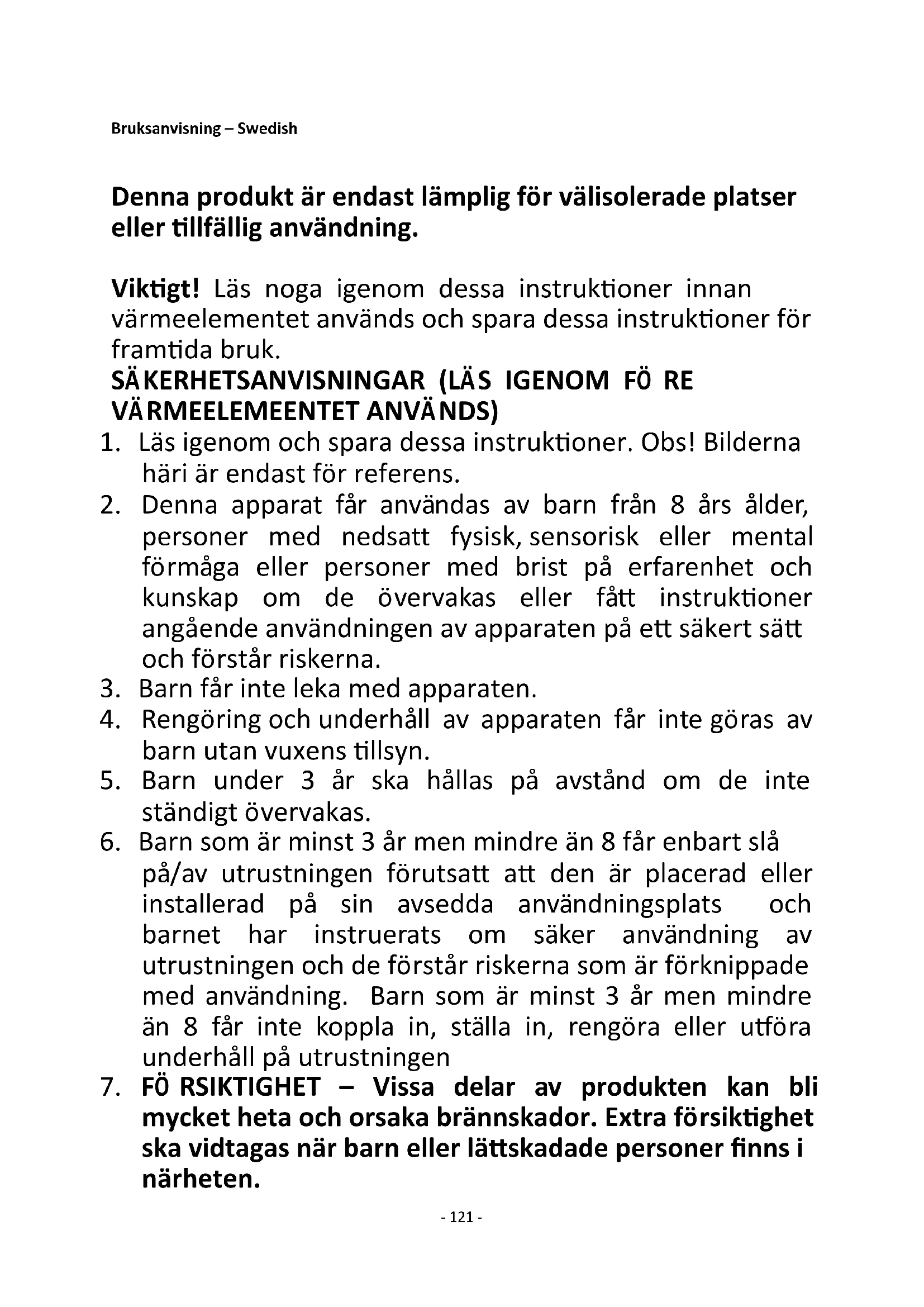 23. Använd inte värmeelementet om strömkabeln är skadad.- 123 -