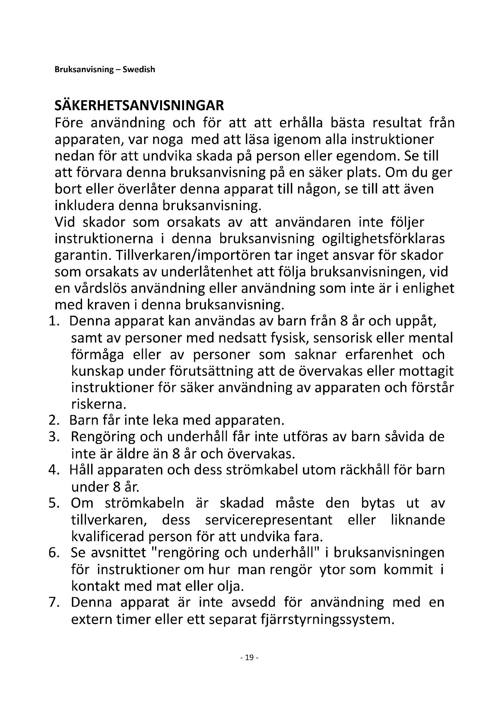 20. Använd inte apparaten för något annat ändamål än den är