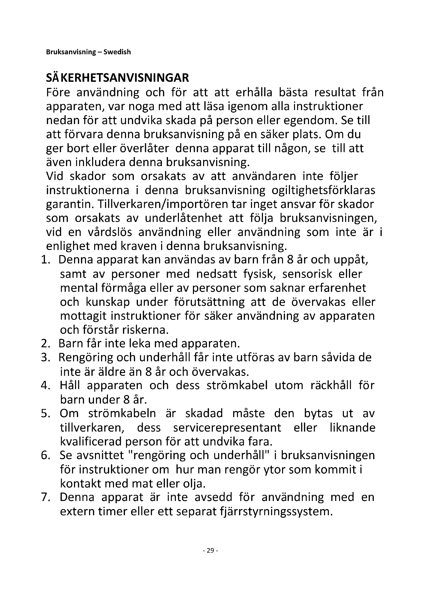 1. Denna apparat kan användas av barn från 8 år och uppåt,