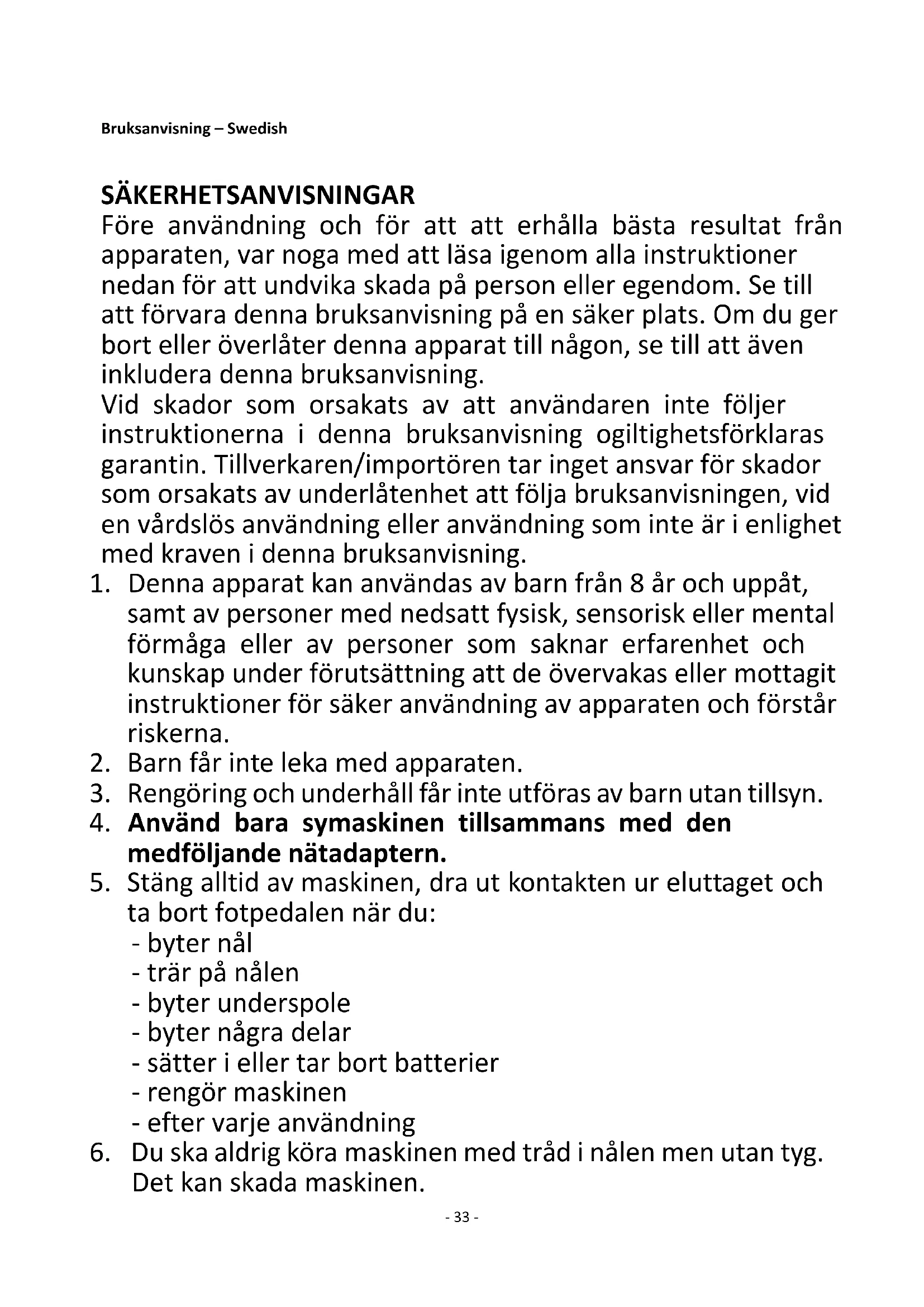 4. Använd bara symaskinen tillsammans med den