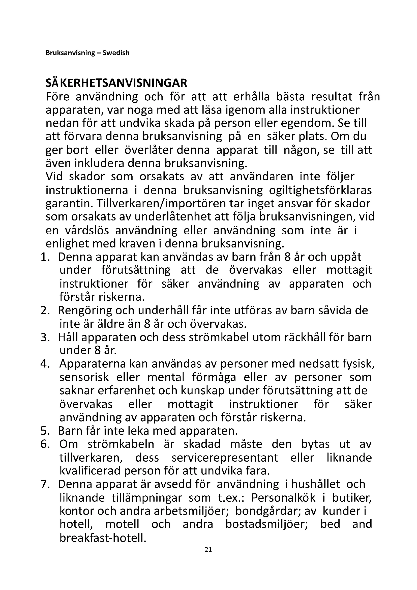 31. Vattenkokaren är endast avsedd för användning i hemmet,