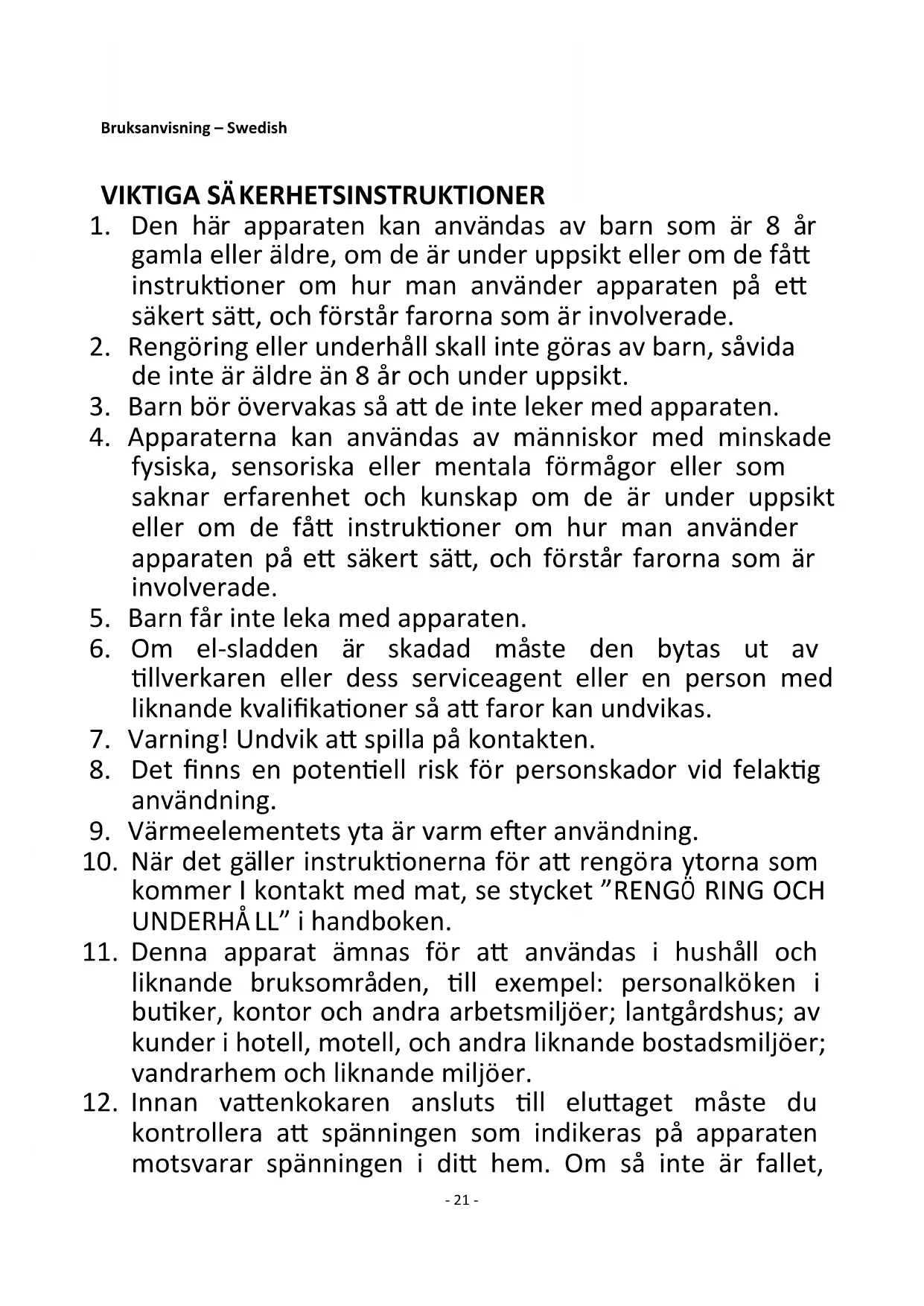 33. Vattenkokaren får endast användas i hushållet, inte