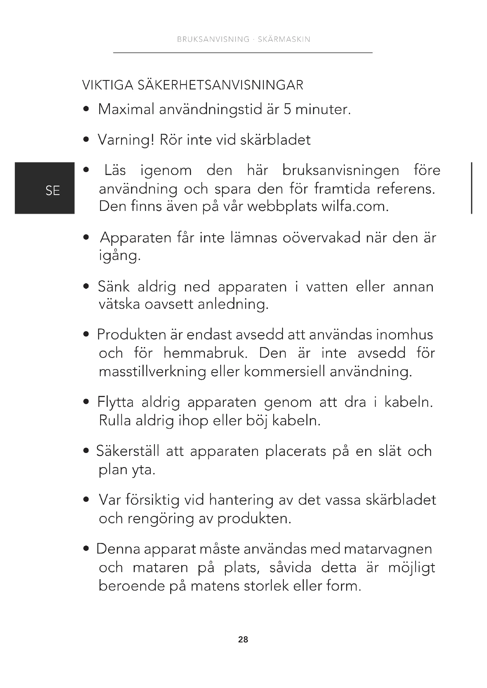 - Läs igenom den här bruksanvisningen före användning och spara den för framtida referens. Dennnsävenpåvårwebbplatswilfa.com.