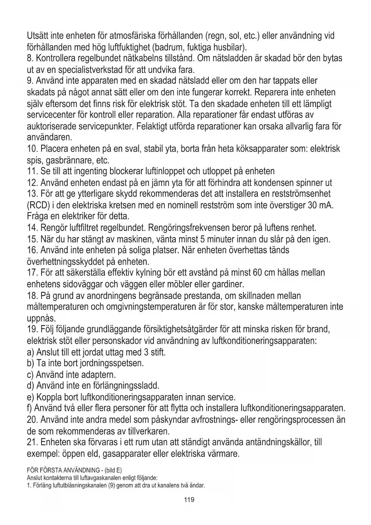 21. Enheten ska förvaras i ett rum utan att ständigt använda antändningskällor, till