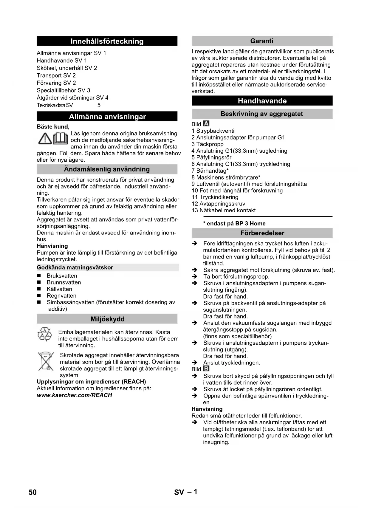 BP 3 Home - Pump Kärcher - Gratis bruksanvisning och manual