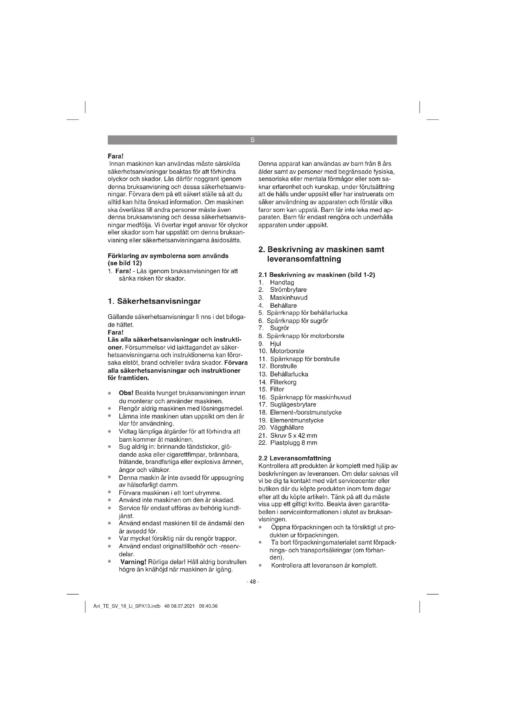 Kontrollera att leveransen är komplett. Anl_TE_SV_18_Li_SPK13.indb 48 08.07.2021 08:40:36S