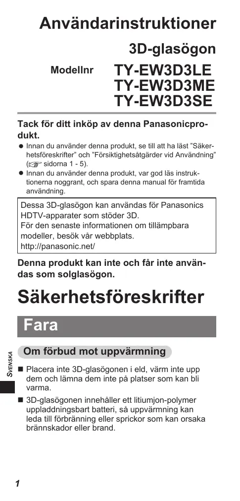 BRUKSANVISNING TY-EW3D3SE PANASONIC