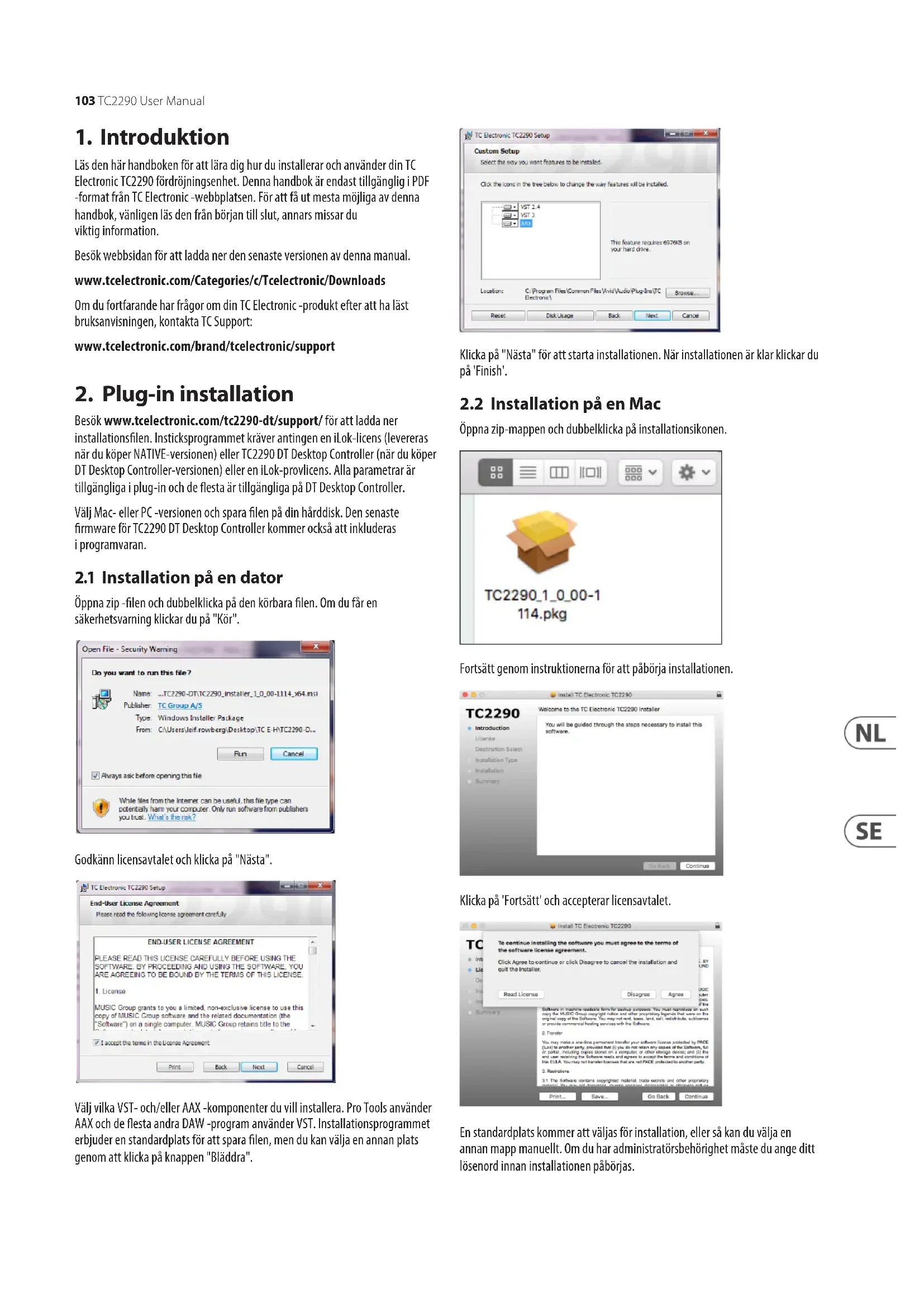 Besök www.tcelectronic.com/tc2290-dt/support/ för att ladda ner installationslen. Insticksprogrammet kräver antingen en iLok-licens (levereras när du köper NATIVE-versionen) eller TC2290 DT Desktop Controller (när du köper DT Desktop Controller-versionen) eller en iLok-provlicens. Alla parametrar är tillgängliga i plug-in och de esta är tillgängliga på DT Desktop Controller. Välj Mac- eller PC -versionen och spara len på din hårddisk. Den senaste rmware för TC2290 DT Desktop Controller kommer också att inkluderas i programvaran.