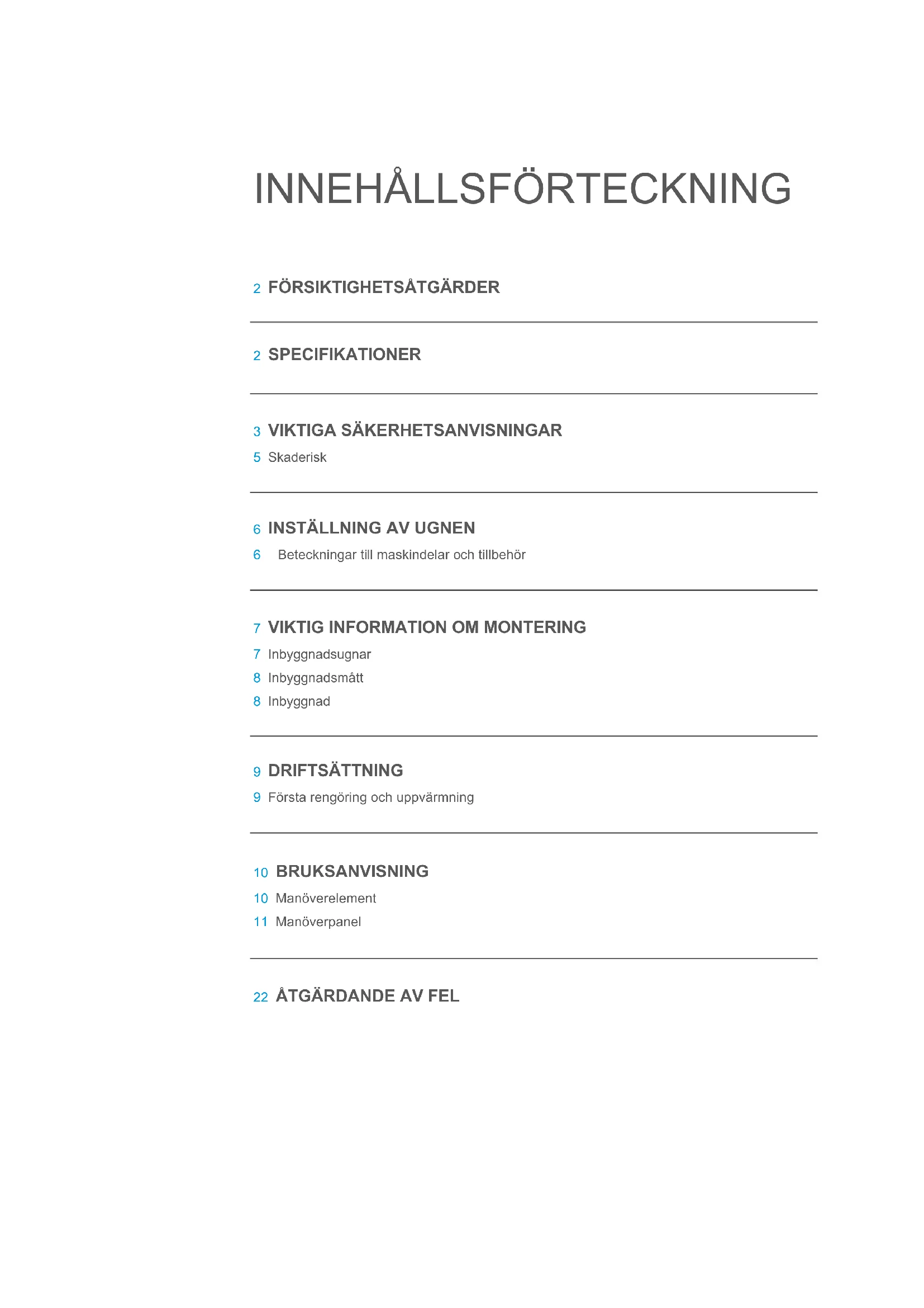 - Ugnen är inte avsedd för användning som bordsenhet eller i ett skåp.