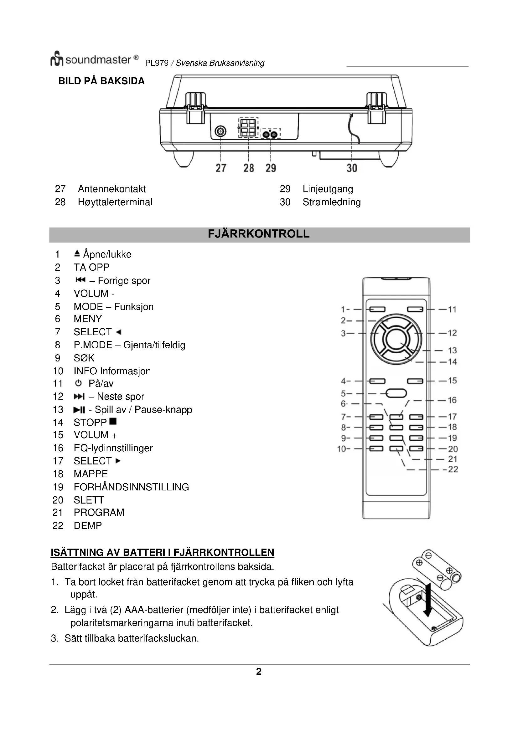 BRUKSANVISNING PL979 Soundmaster