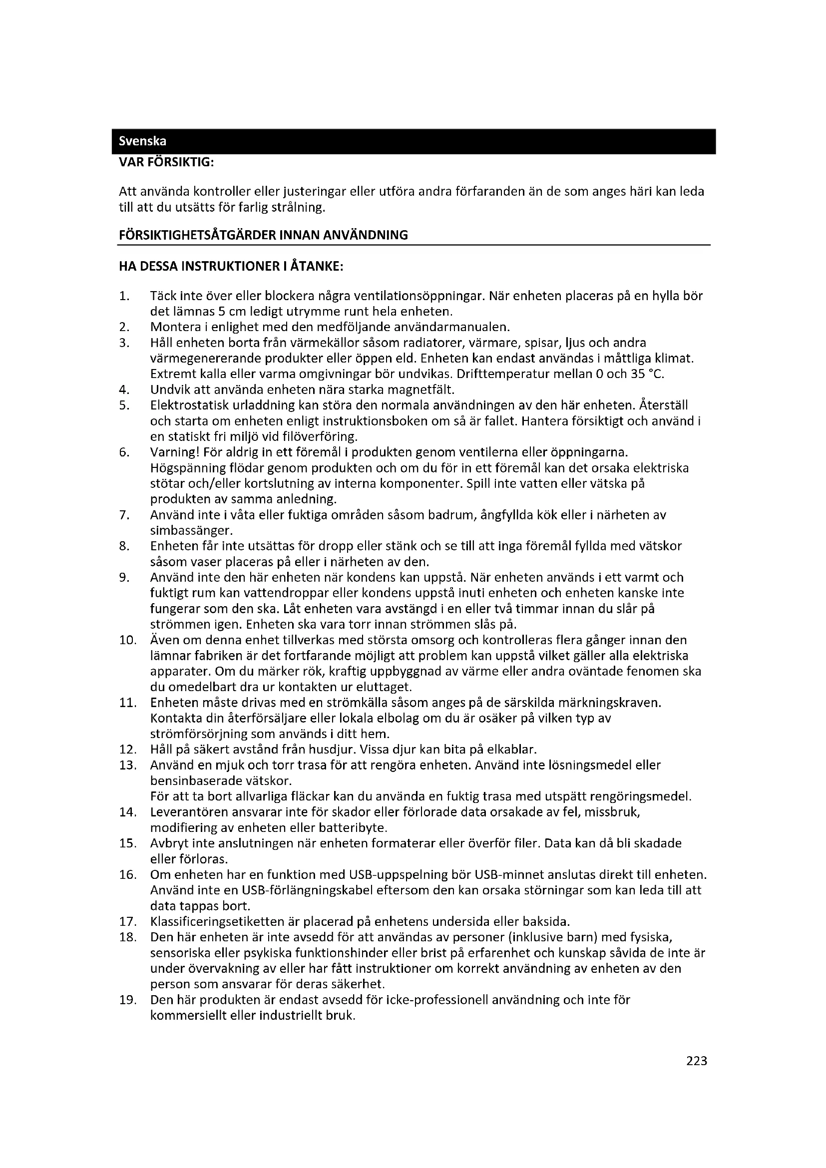 19. Den här produkten är endast avsedd för icke-professionell användning och inte för
