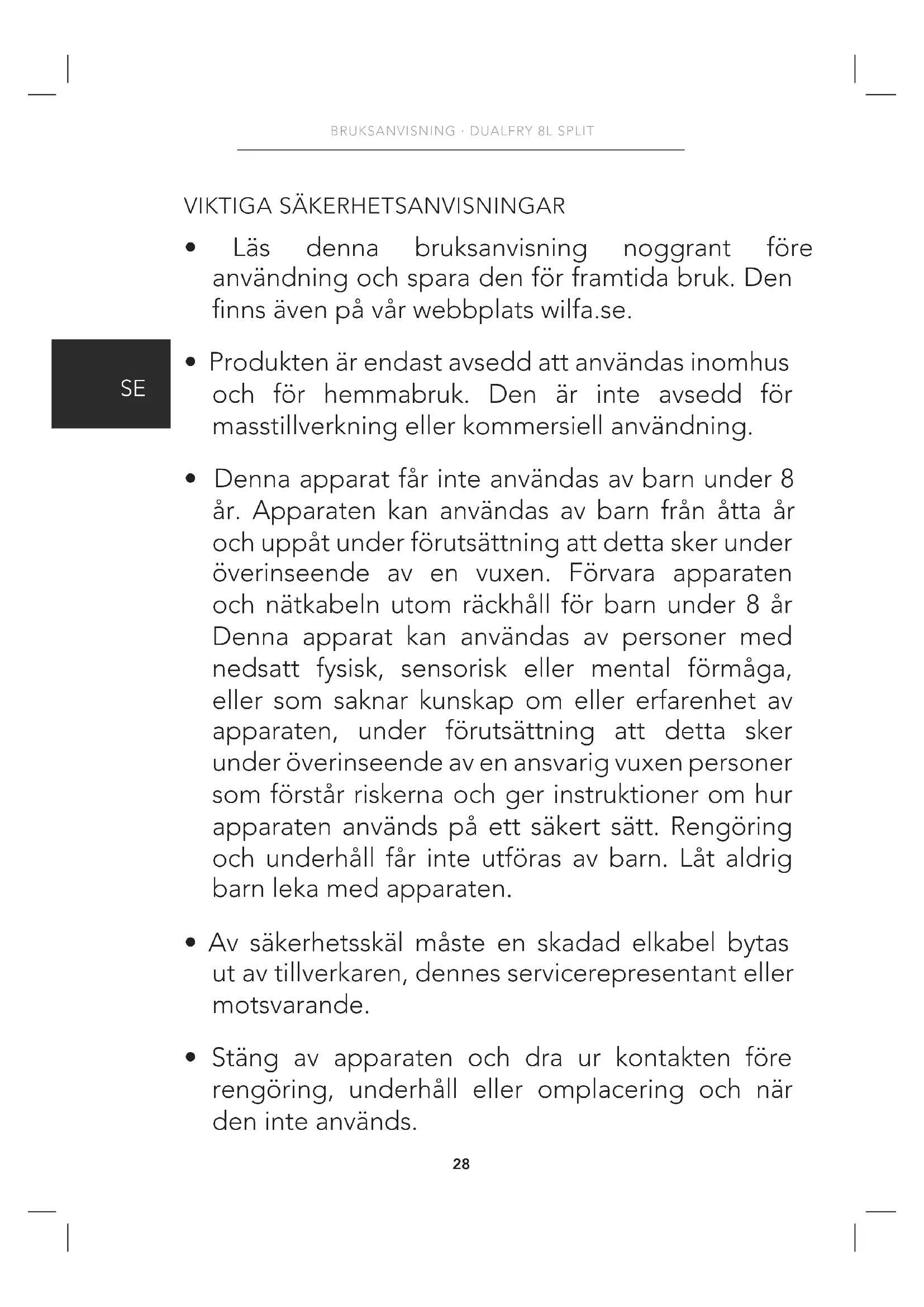 - Läs denna bruksanvisning noggrant före användning och spara den för framtida bruk. Den nns även på vår webbplats wilfa.se.