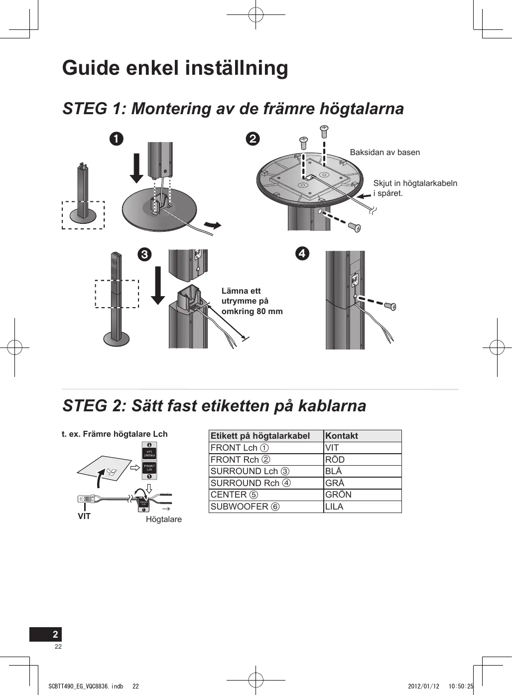 2012/01/12 10:50:25 Guide enkel inställning STEG 1: Montering av de främre högtalarna