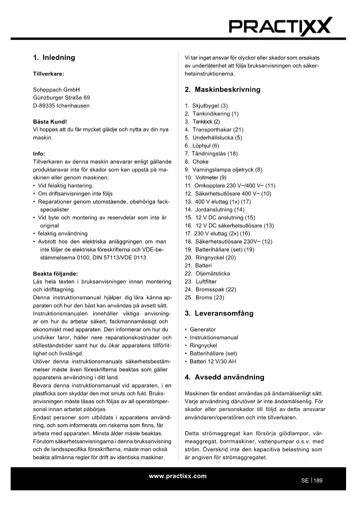 - Generatorn får bara användas med originaltillbehör och originalverktyg från tillverkaren.w ww.practixx.com
