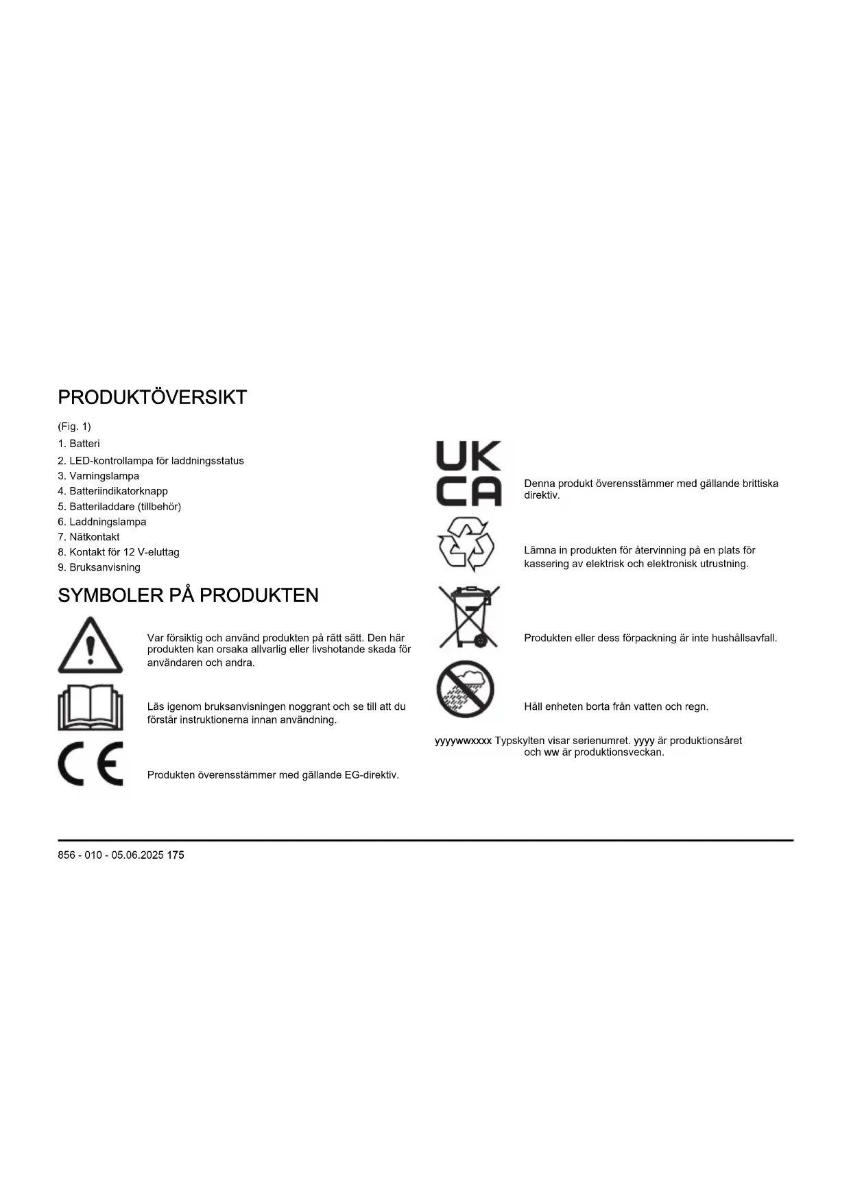 856 - 010 - 05.06.2025 175Notera: Övriga symboler/dekaler på produkten avser specifika krav för