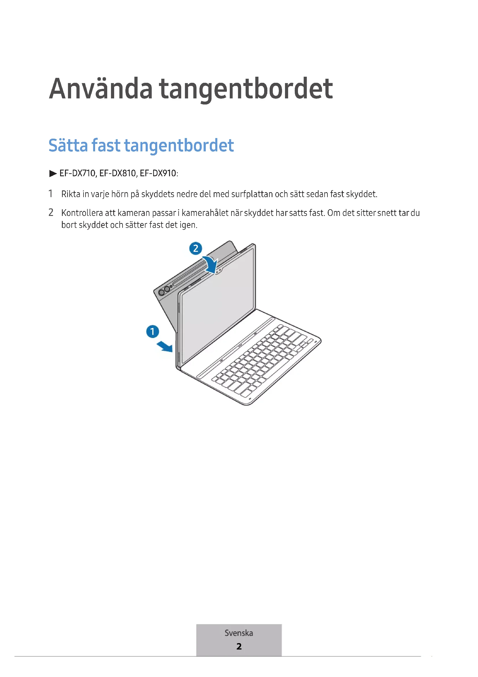]: Slut Mer information om Samsung DeX finns i surfplattans bruksanvisning. Svenska 7Använda tangentbordet