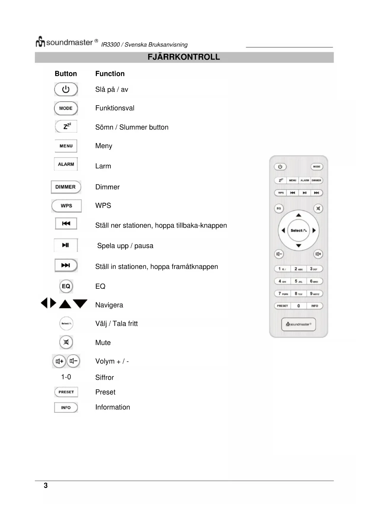 BRUKSANVISNING IR3300 Soundmaster