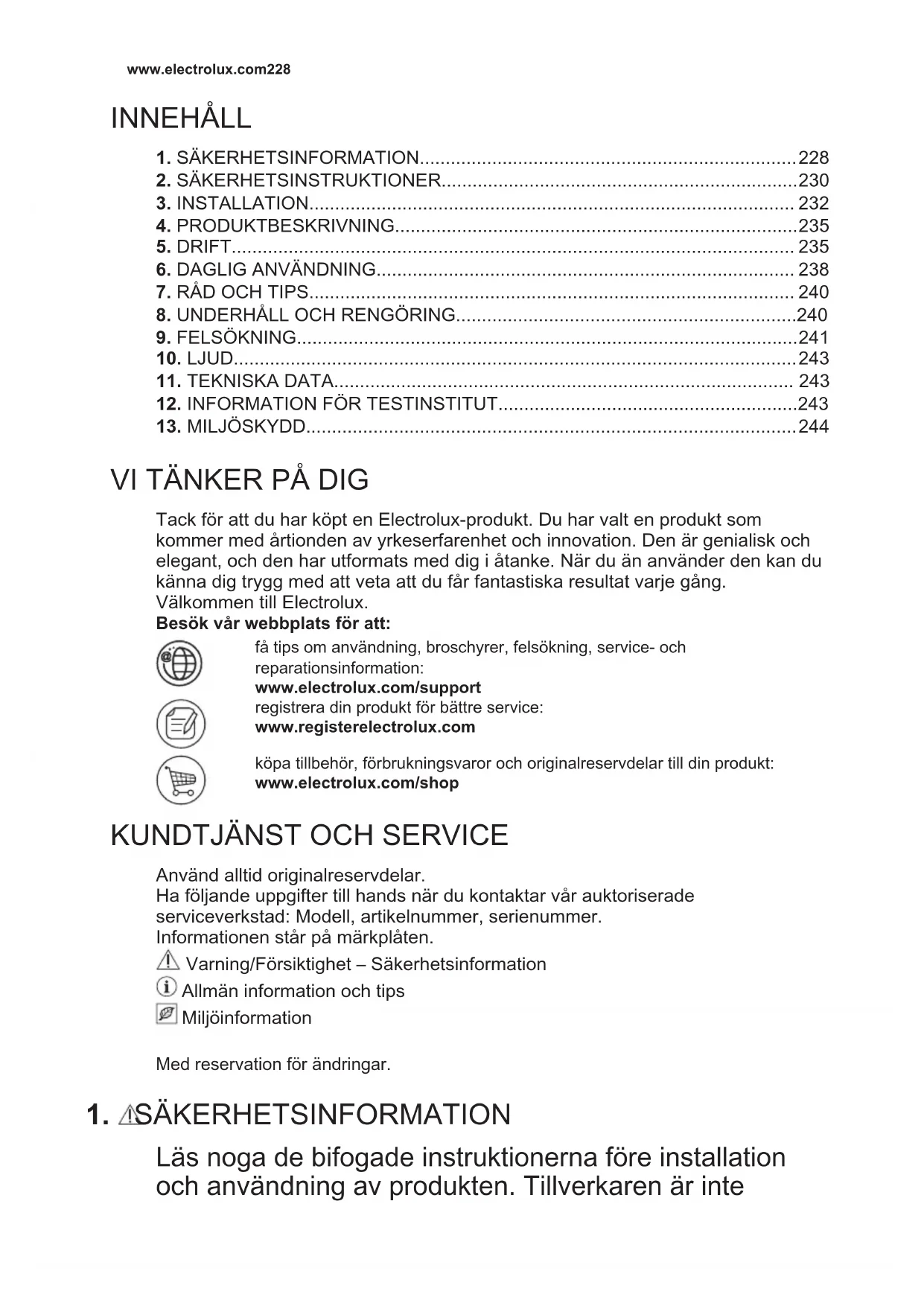 1. SÄKERHETSINFORMATION