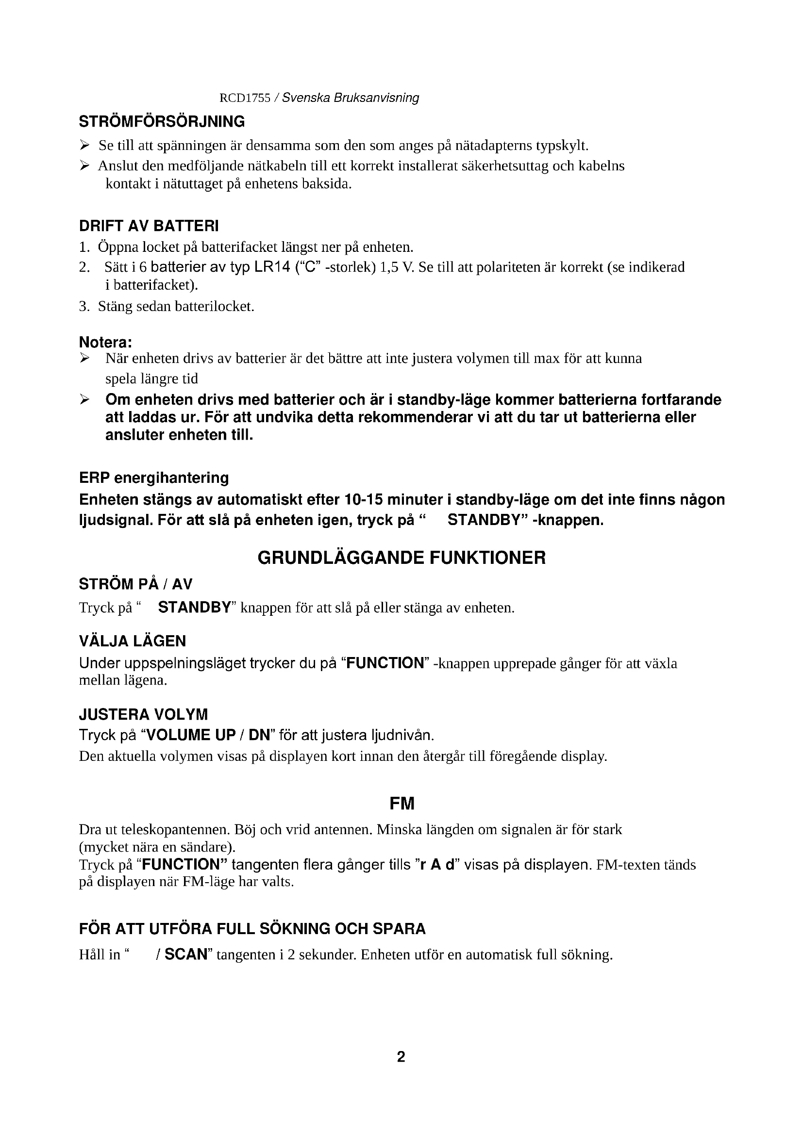 RCD1755 - Radio Soundmaster - Gratis bruksanvisning och manual