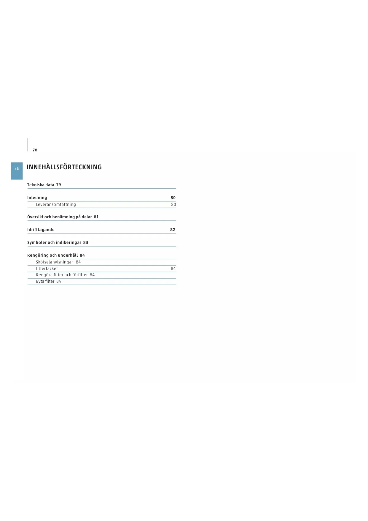 Häll in i 3 s after filterbyte for att Återställa filterlampan.