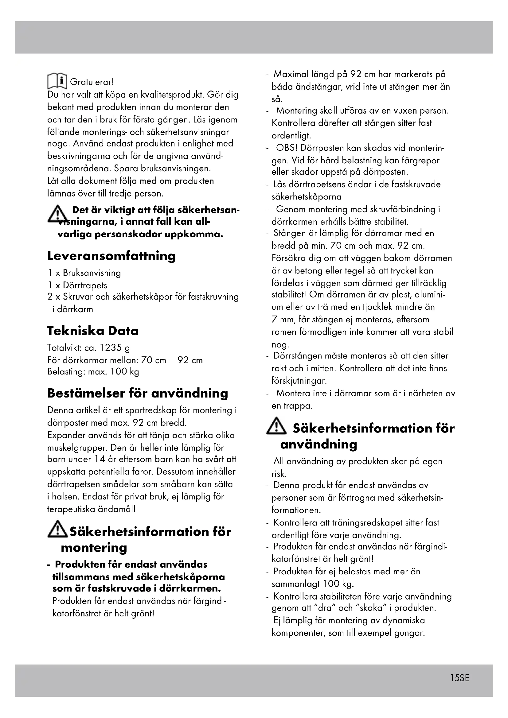 Ladda ner instruktionerna för din Chinsstång i PDF-format gratis! Hitta din manual IAN 24602 - CRIVIT och ta tillbaka ditt elektroniska enhet i hand. På denna sida publiceras alla dokument som behövs för att använda din enhet. IAN 24602 av märket CRIVIT.