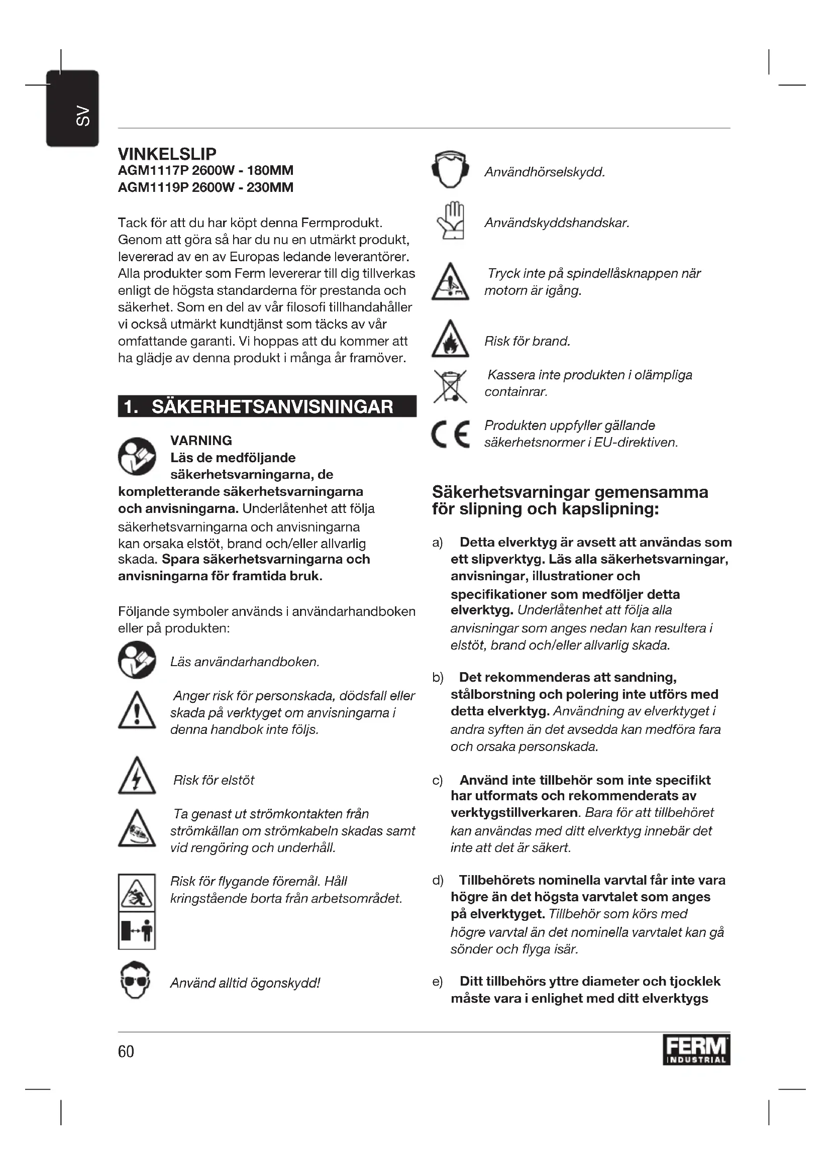 BRUKSANVISNING AGM1119P Ferm