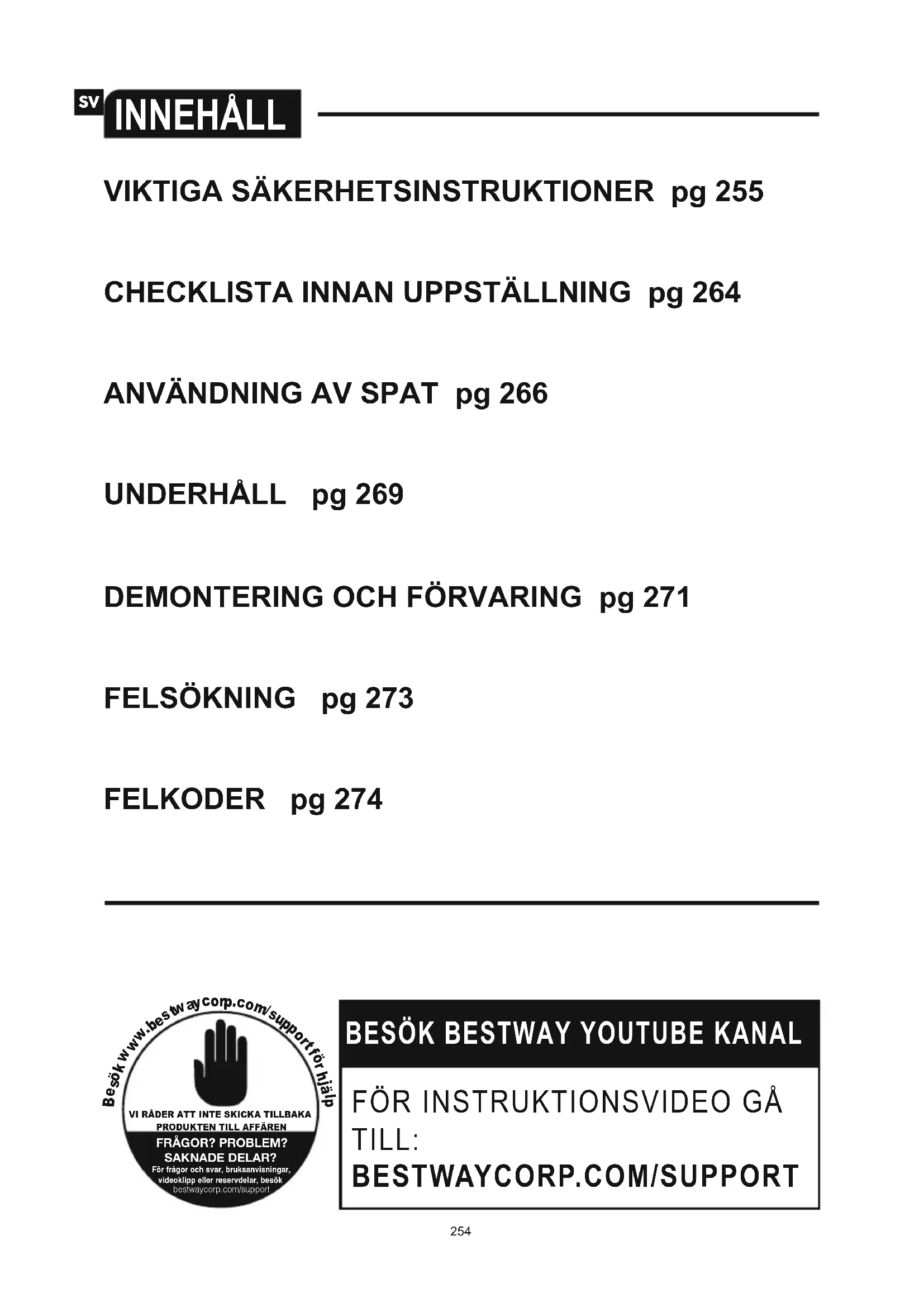 VI RÅDER ATT INTE SKICKA TILLBAKAPRODUKTEN TILL AFFÄRENFRÅGOR? PROBLEM?SAKNADE DELAR?För frågor och svar, bruksanvisningar,videoklipp eller reservdelar, besökbestwaycorp.com/support