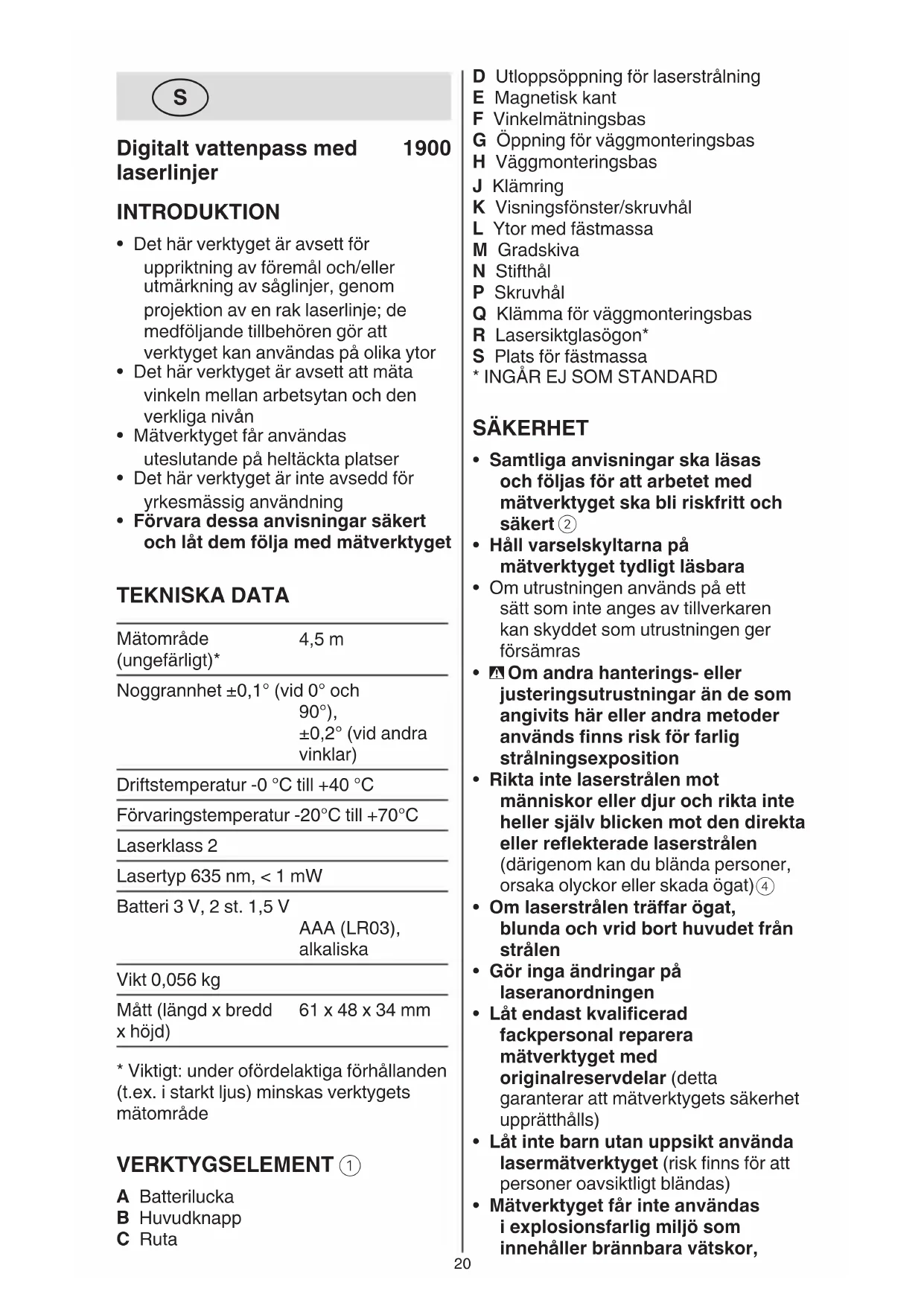 - Samtliga anvisningar ska läsas och följas för att arbetet med mätverktyget ska bli riskfritt och säkert